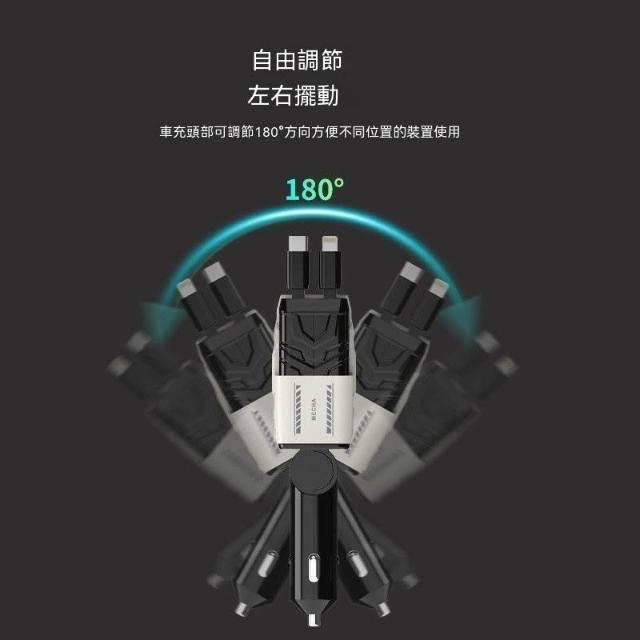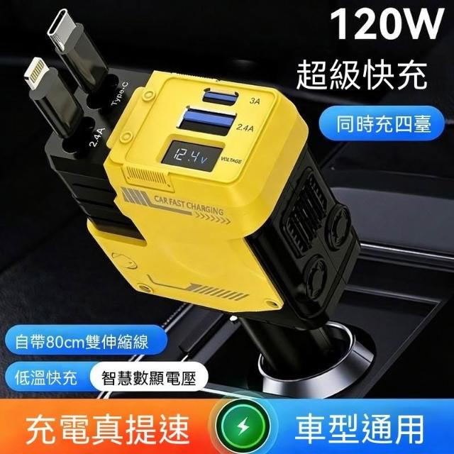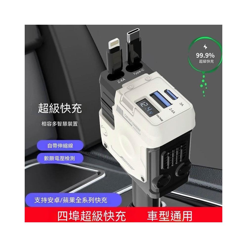 茂源優選車載充電器120W超級快充機甲款伸縮數據線一拖四車載充電器黑科技