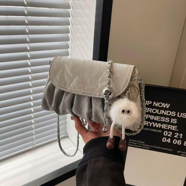 佳佳優選小精靈掛件斜挎包鏈條清新雲朵2026bag學院風軟褶皺腋下單肩包女
