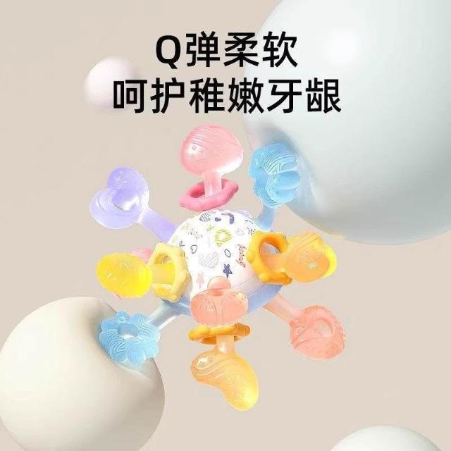 佳佳優選嬰兒手抓曼哈頓球口欲期防吃手寶寶磨牙可咬玩具搖鈴牙膠二合一