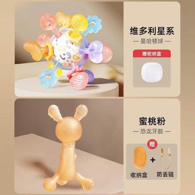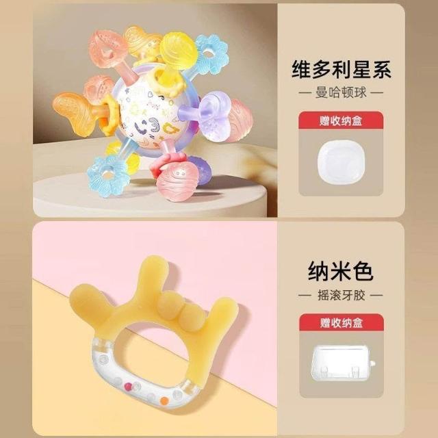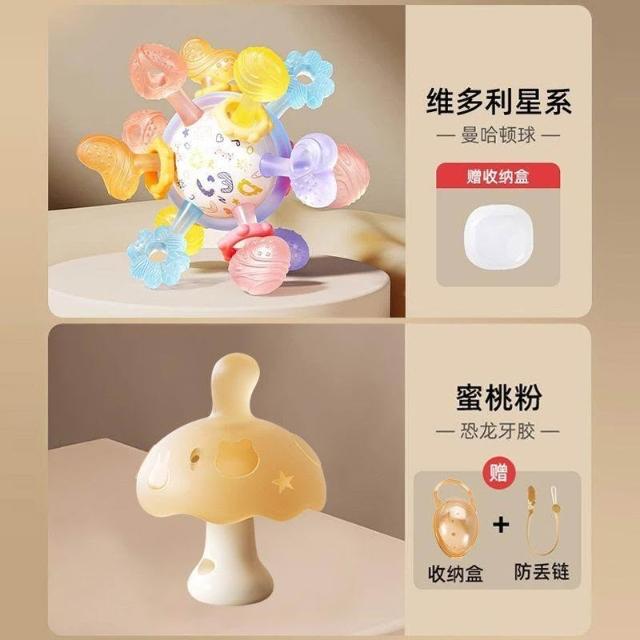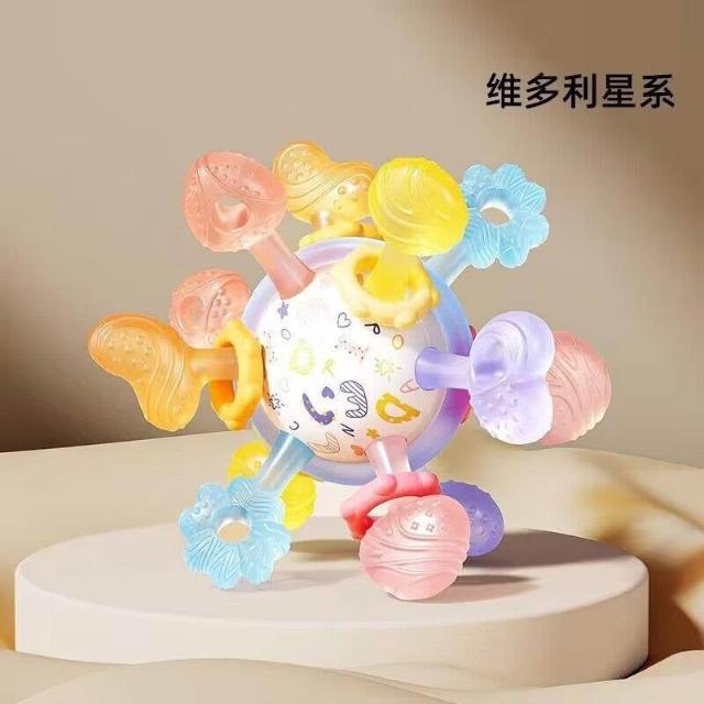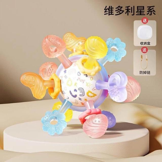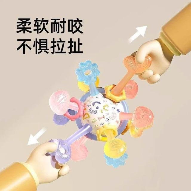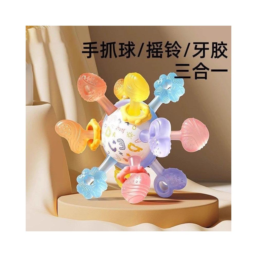佳佳優選嬰兒手抓曼哈頓球口欲期防吃手寶寶磨牙可咬玩具搖鈴牙膠二合一