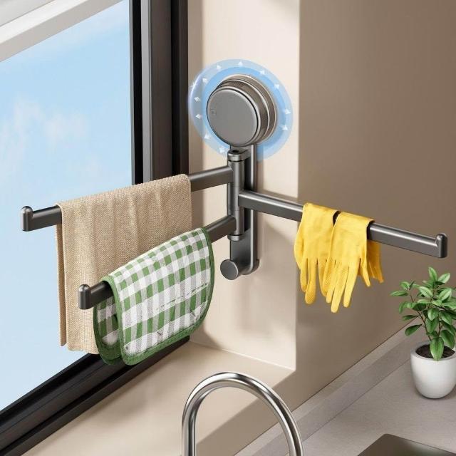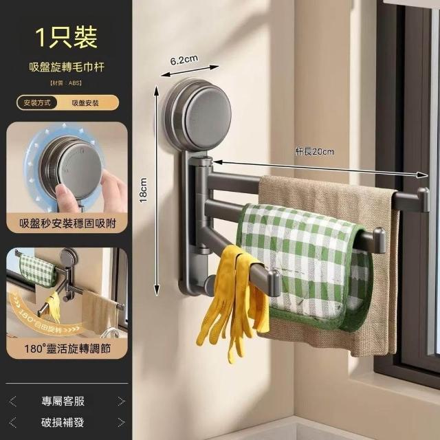 佳佳優選吸盤式抹布架免打孔家用多功能分層牆上壁掛式置物架旋轉毛巾架
