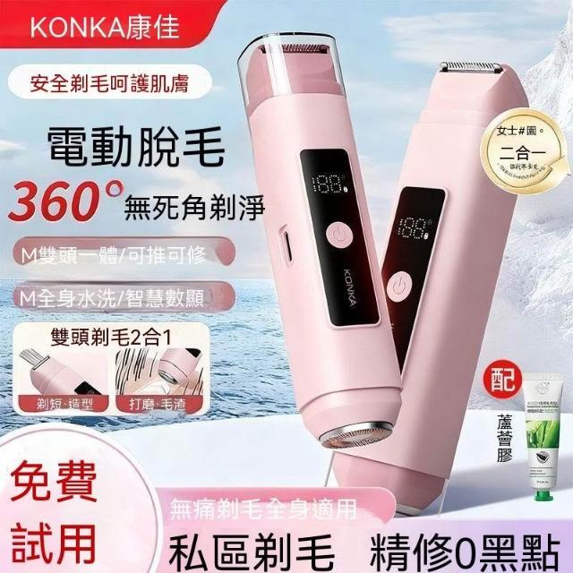 佳佳優選康佳電動脫毛器女士專用數顯剃毛器雙刀頭不卡毛不留黑點全身剃毛