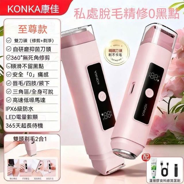 佳佳優選康佳電動脫毛器女士專用數顯剃毛器雙刀頭不卡毛不留黑點全身剃毛