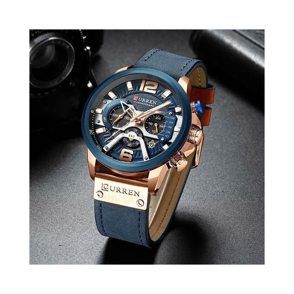 佳佳優選CURREN卡瑞恩男士手錶商務皮帶表日曆男表六針石英錶時尚潮流腕錶