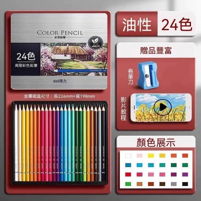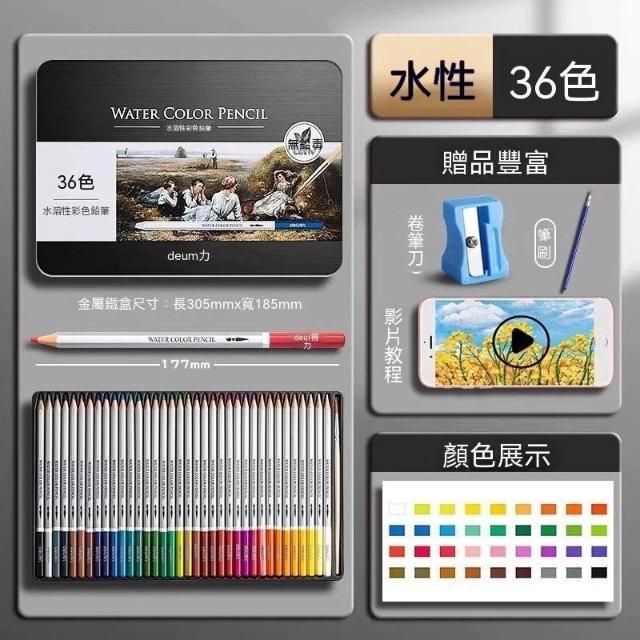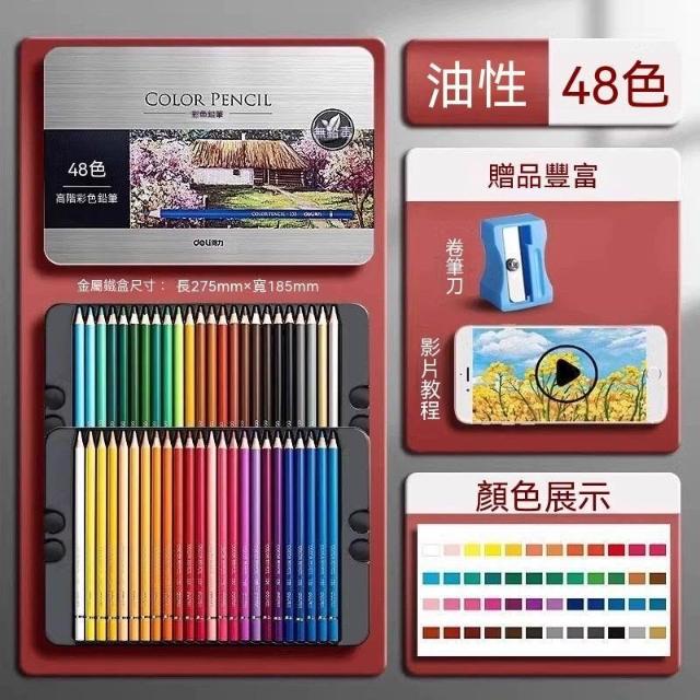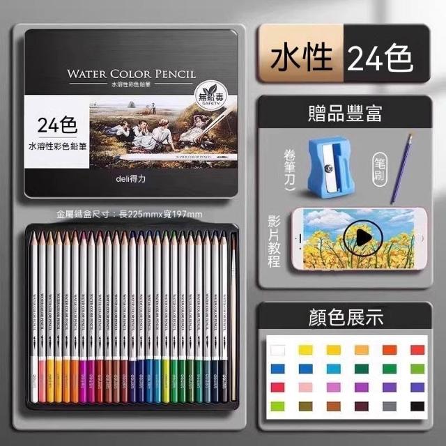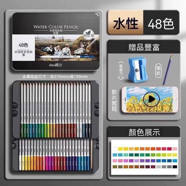 佳佳優選得力水溶性彩鉛48色初學者兒童繪畫套裝鉛筆學生專用彩色鉛筆盒裝
