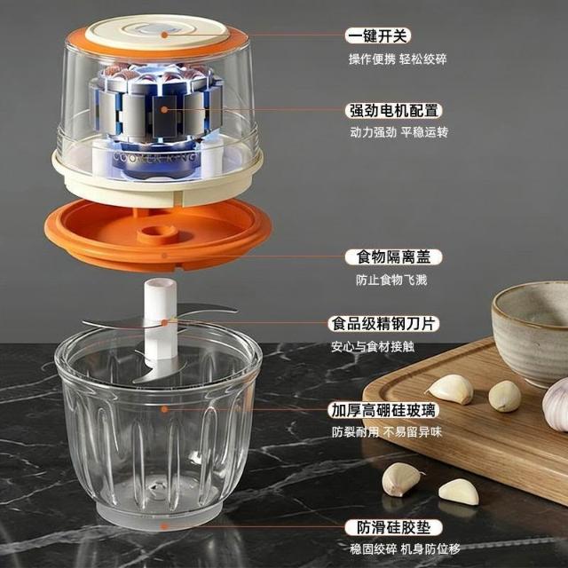 佳佳優選博雅俏搗蒜攪拌絞肉機多功能電動無線充電玻璃碗蒜泥神器料理機