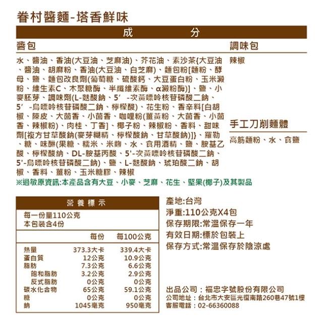 福忠字號眷村醬麵 塔香鮮味/蒜香麻醬/醋香椒麻 綜藝教父王偉忠推薦 拌麵 乾麵 乾拌麵
