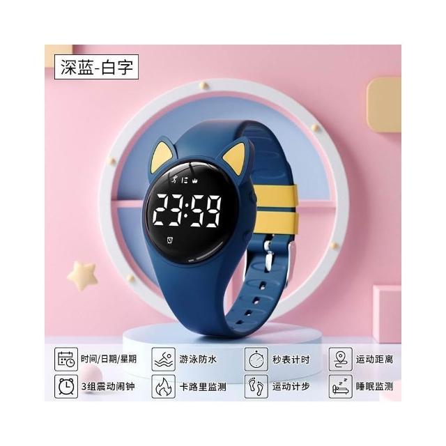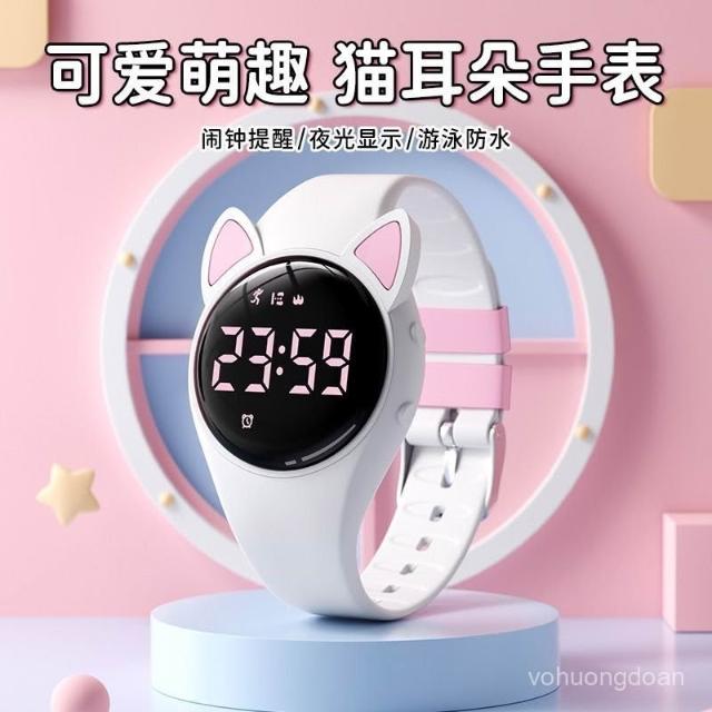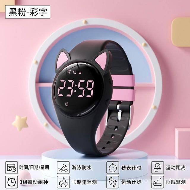 新越手錶可愛兒童貓耳朵電子腕錶夜光顯示百搭防水計步計時運動學生手錶女