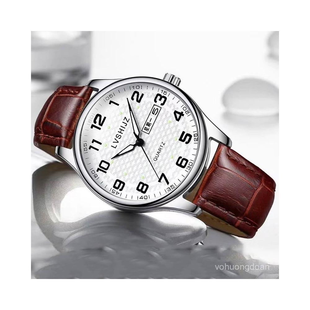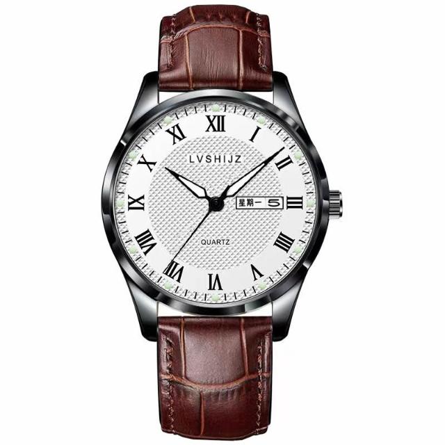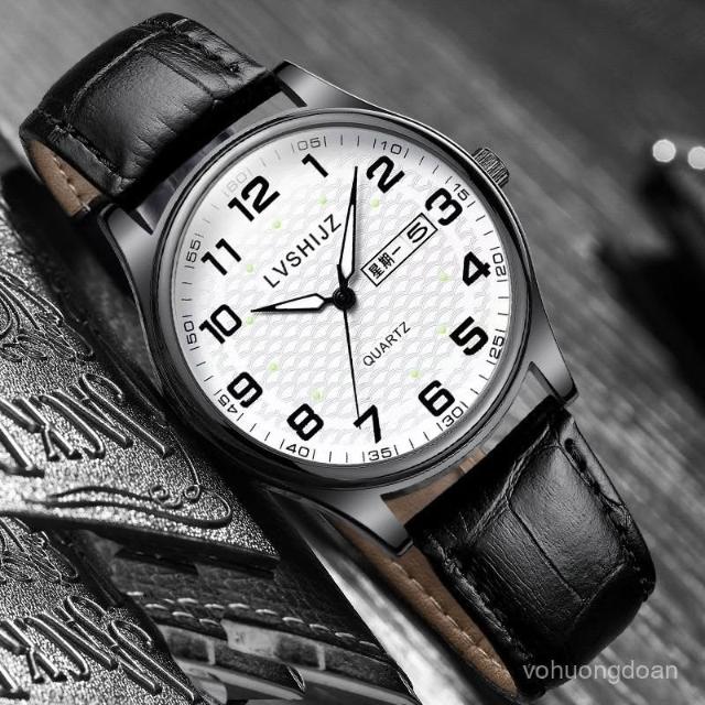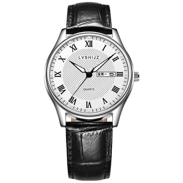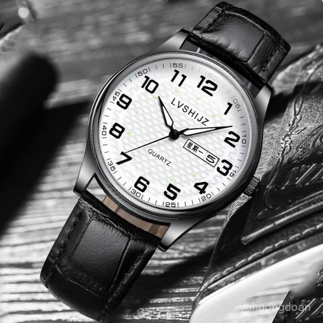 新越手錶簡約夜光大數字經典百搭指針大錶盤防水石英男錶送男友考試老人錶