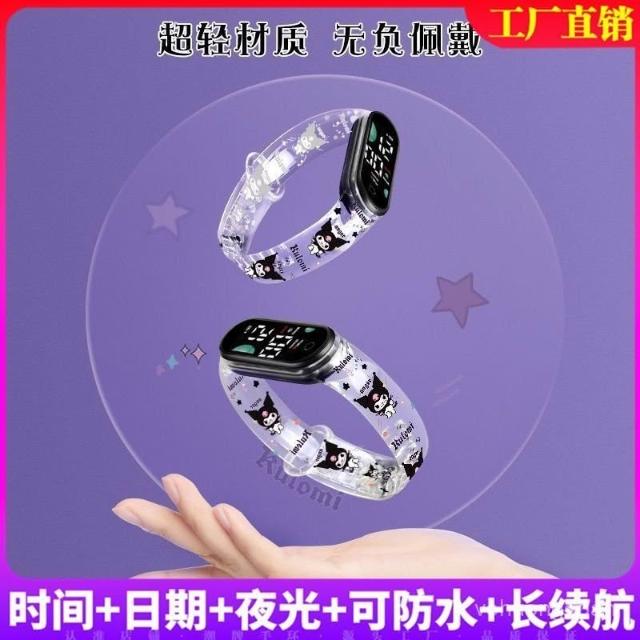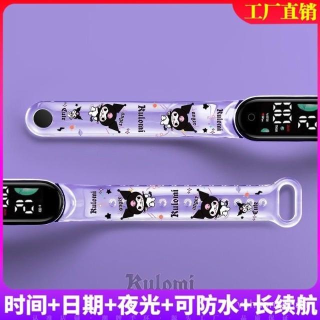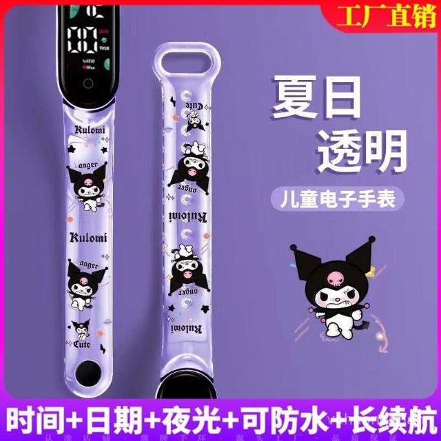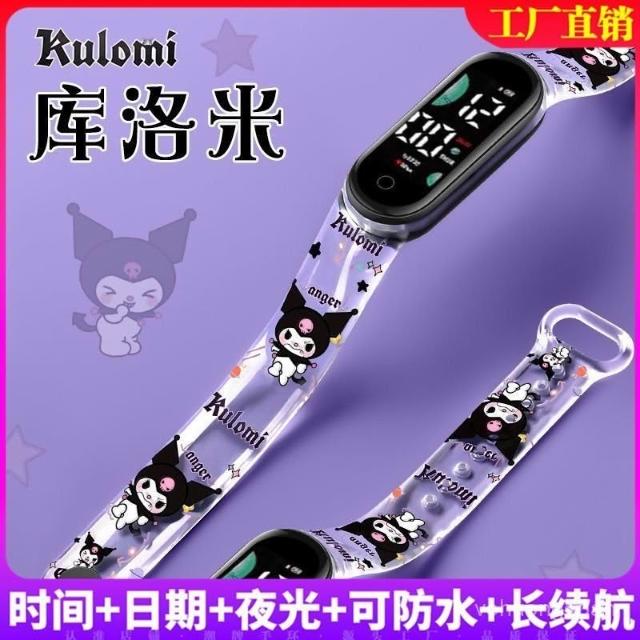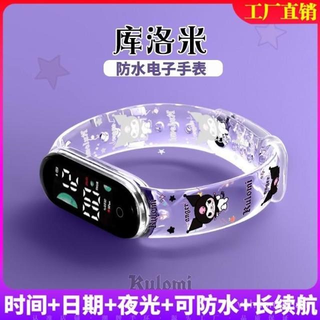 新越手錶新款半透明庫洛米兒童運動手環錶印花學生手錶時尚夜光可防水潮牌