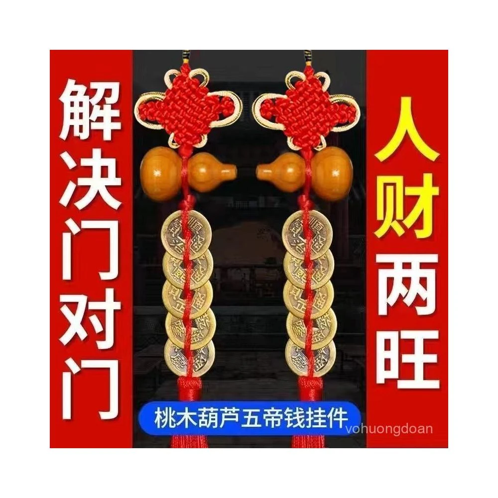 精選聯盟 桃木葫蘆五帝錢門對門吉祥結掛件中國結入戶門朝大門廚房客廳掛飾 熱賣