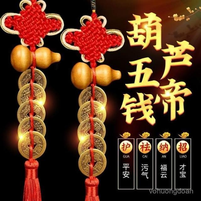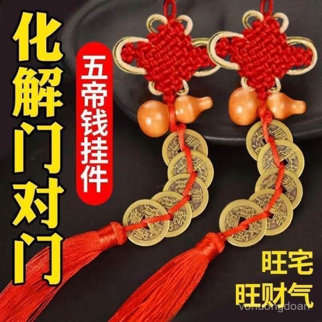精選聯盟 桃木葫蘆五帝錢門對門吉祥結掛件中國結入戶門朝大門廚房客廳掛飾 熱賣