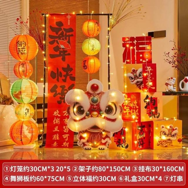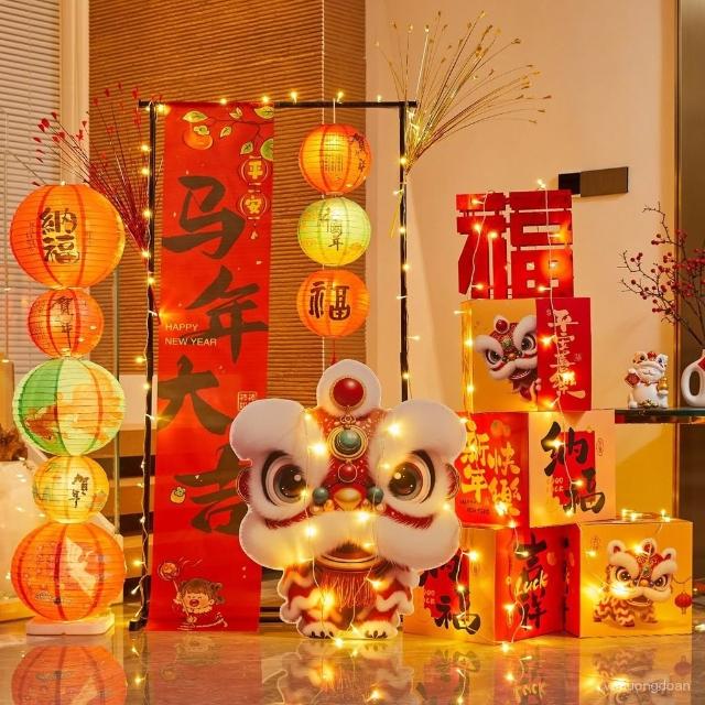 精選聯盟 馬年元旦新年氛圍裝飾掛飾舞獅福字燈籠2026春節過年場景布置道具 熱賣