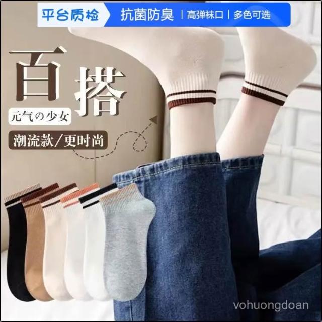 kkwz短襪女款低幫春季薄款ins百搭女士條紋短襪運動船襪