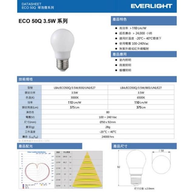 Everlight 億光超節能 LED 3.5W 小瓦數 燈泡 迷你型 白光 黃光 一年保固 E27 LED燈泡 球泡