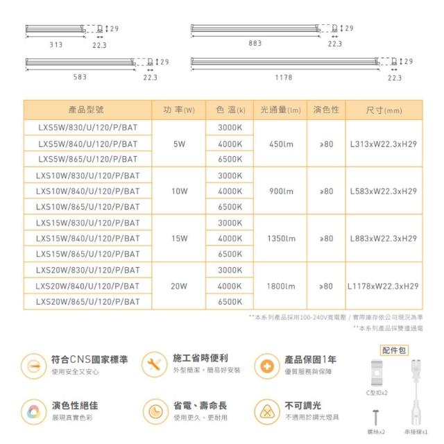 旭光 T5支架燈 LED串接燈 4尺 20W / 3尺 15W / 2尺 10W / 1尺 5W 一體式串接 兩孔