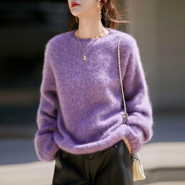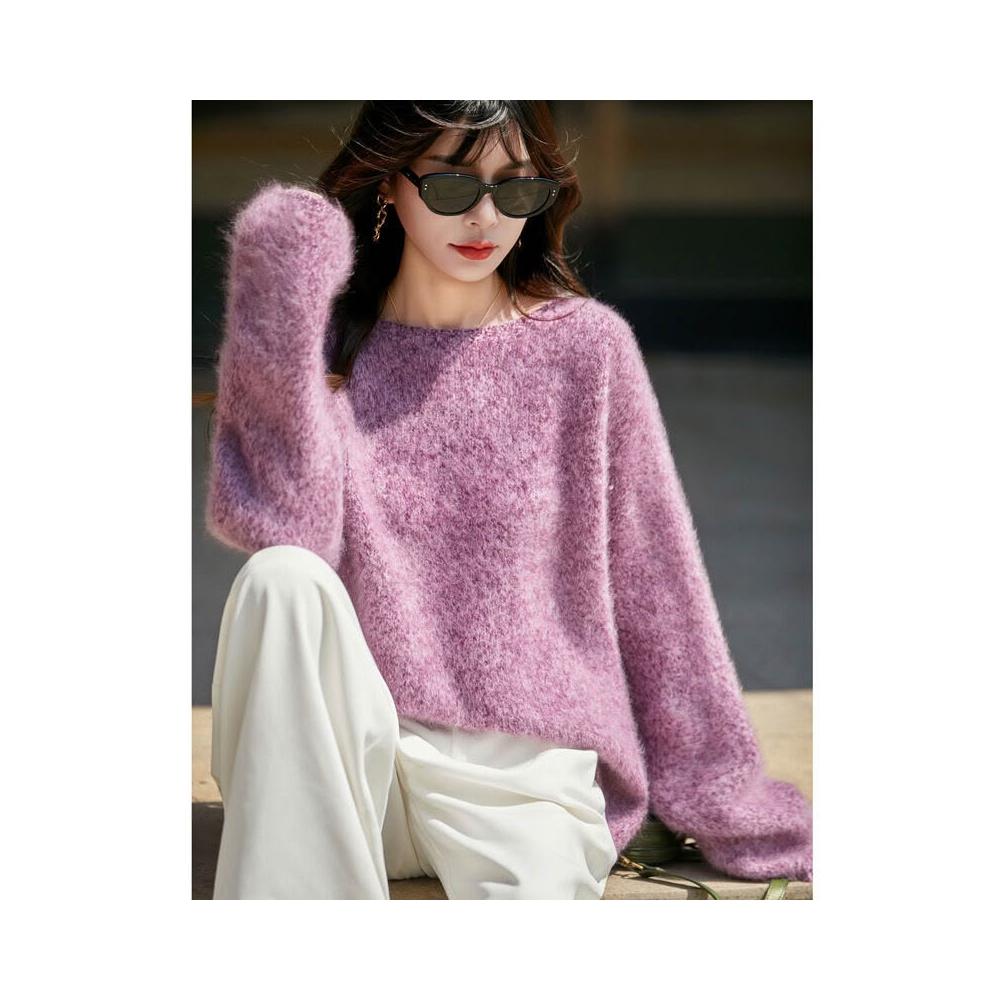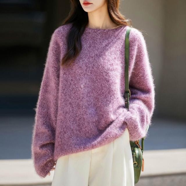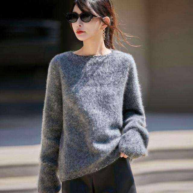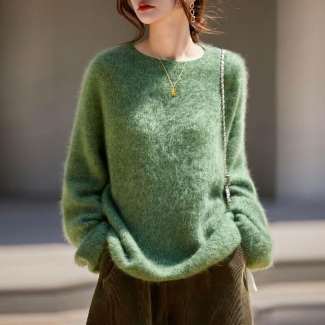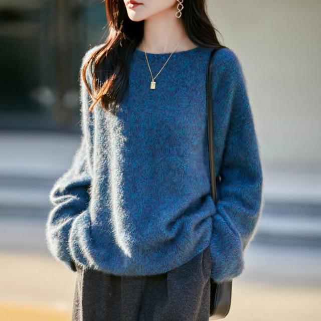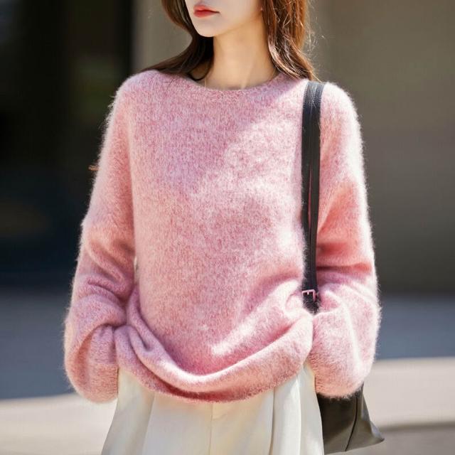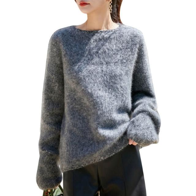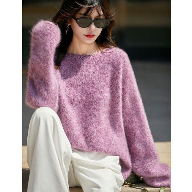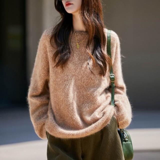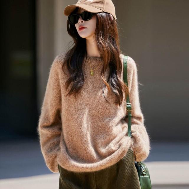 歐萊 秋冬新款加厚拉絨羊毛衫女寬松慵懶風針織套頭毛衣花紗女裝打底衫