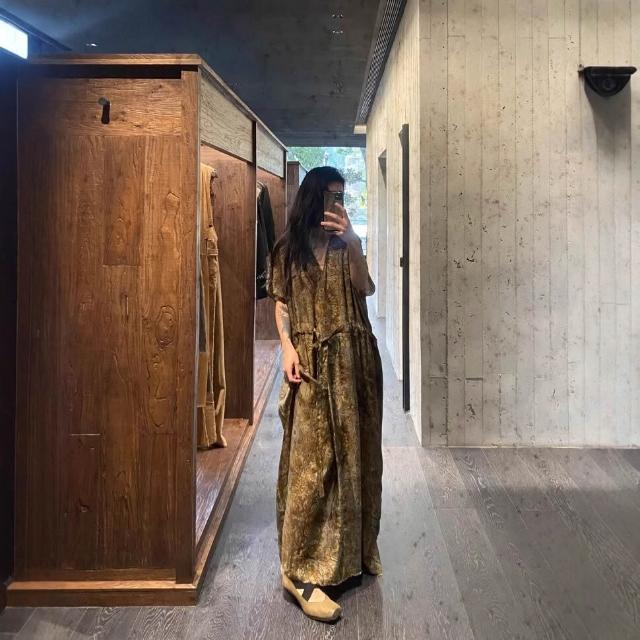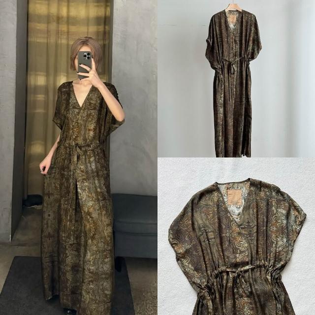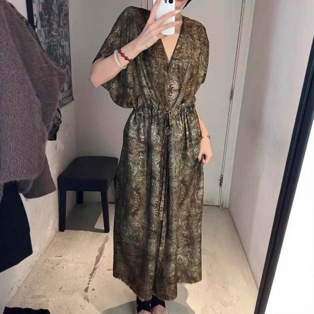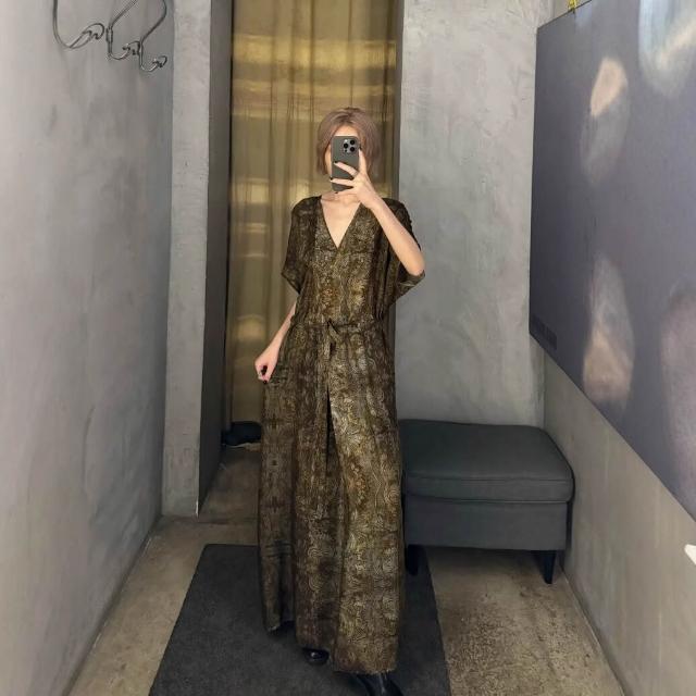 歐萊2025春夏新款印花V領裙 連衣裙優雅