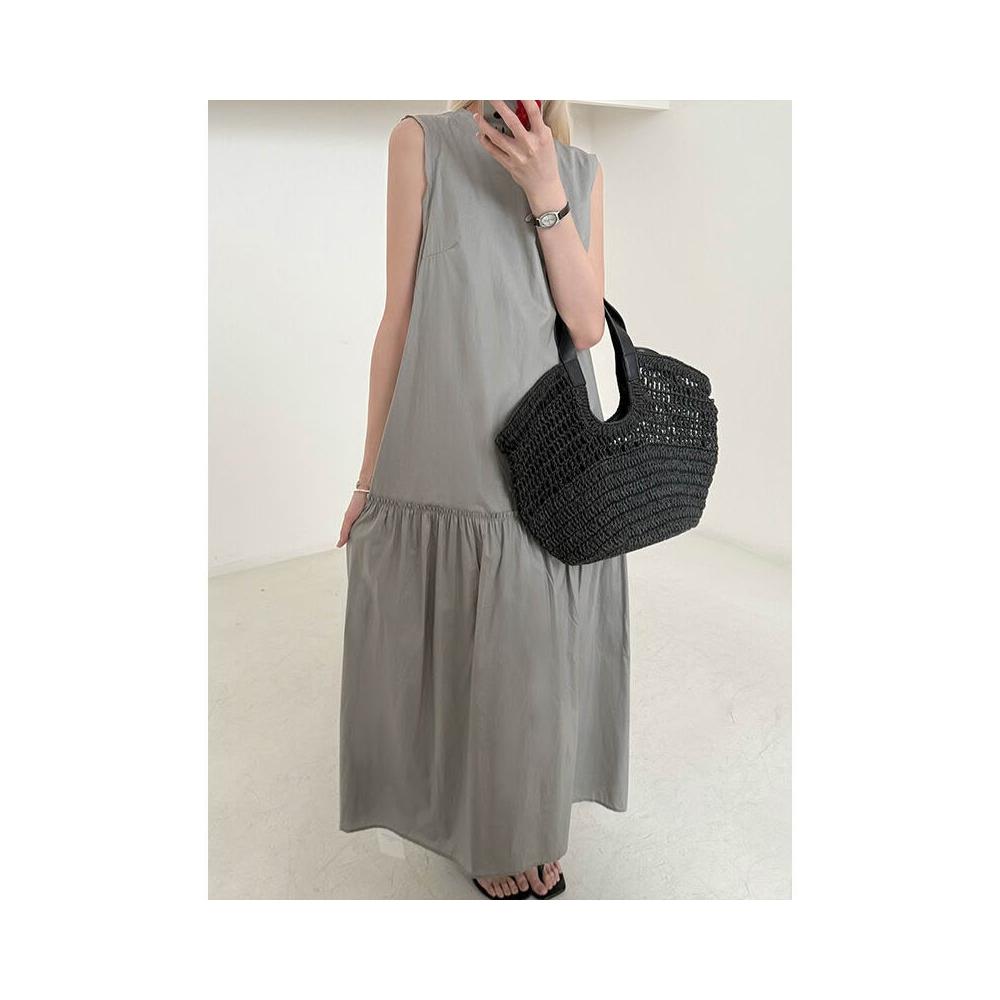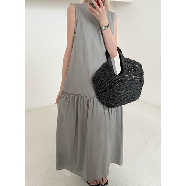 歐萊夏日甜美度假風長裙2025新款無袖連衣裙女