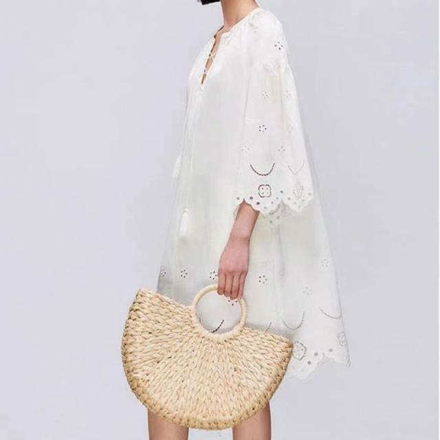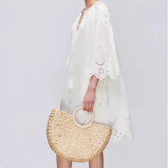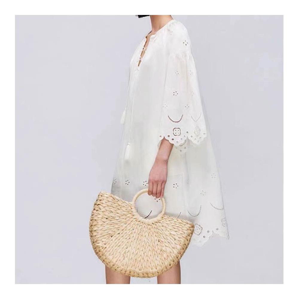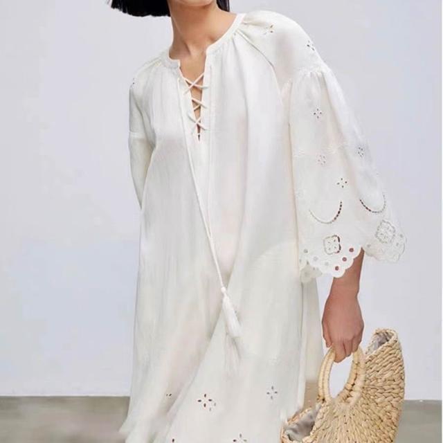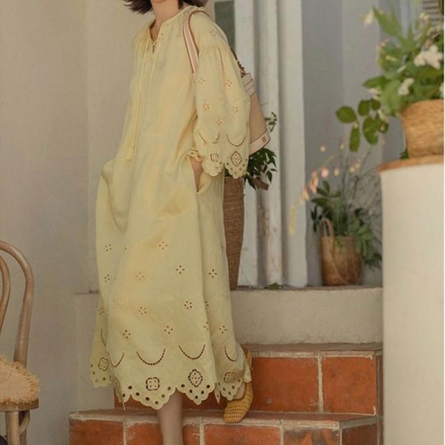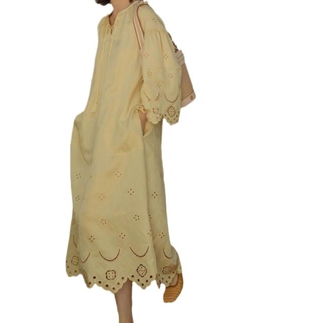 歐萊 高端精致镂空勾花連衣裙女夏2023遮肚子設計感小眾法式度假風長裙
