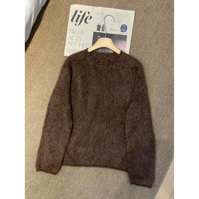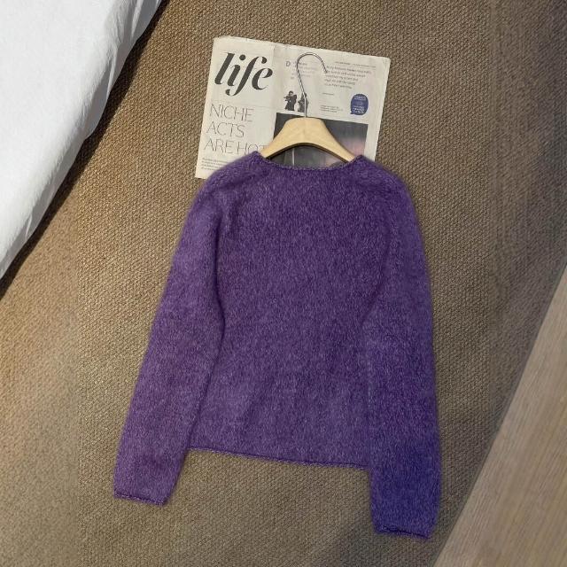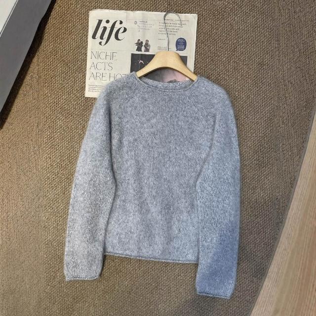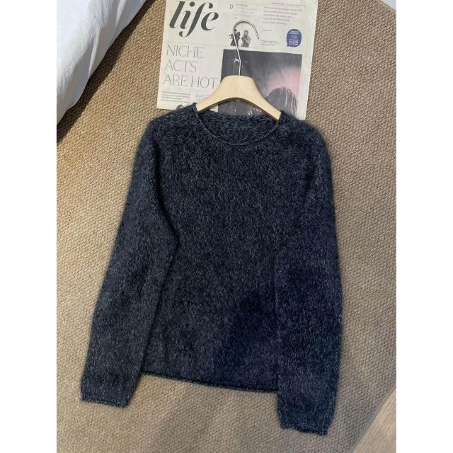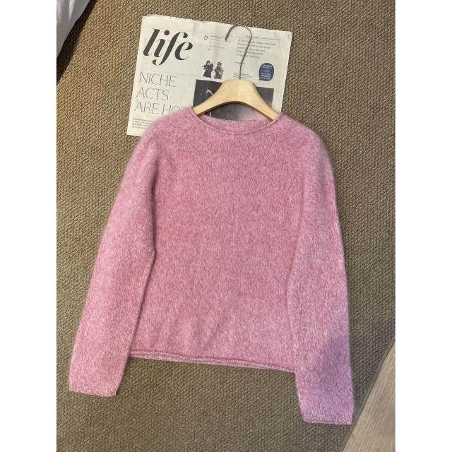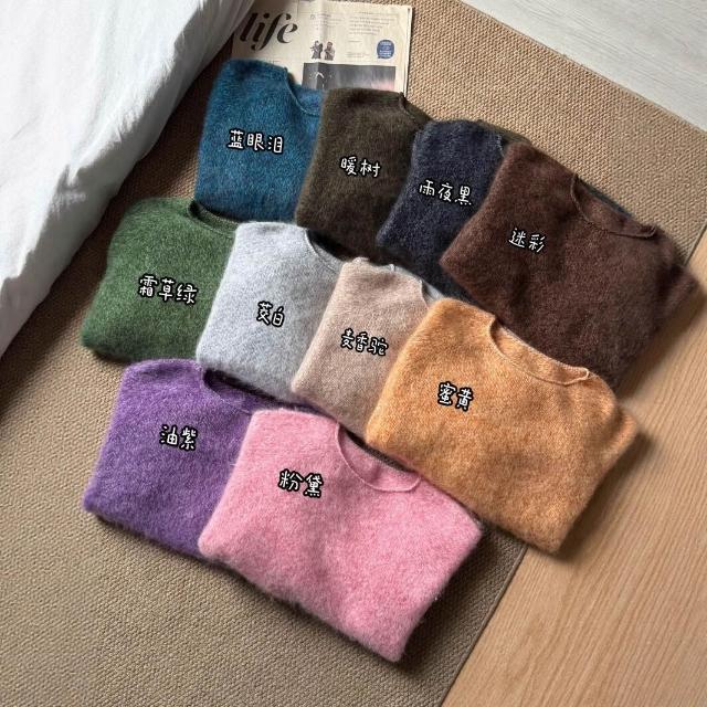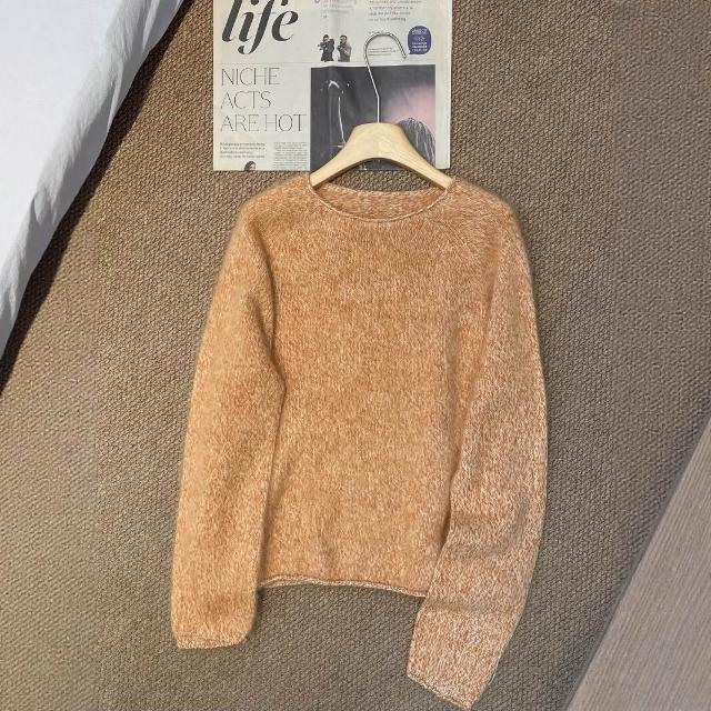 歐萊 慵懶隨性過冬羊毛衫女拉毛圓領加厚花紗套頭寬松時尚洋氣針織毛