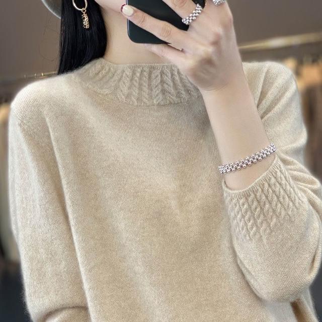歐萊 羊毛衫女半高領薄款時尚氣質打底衫內搭羊絨衫高檔
