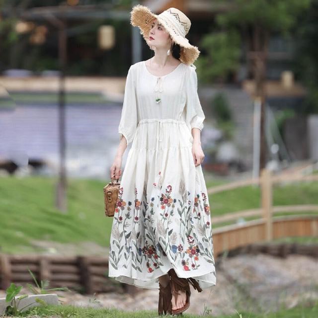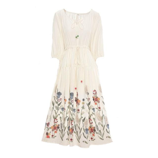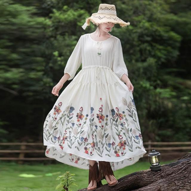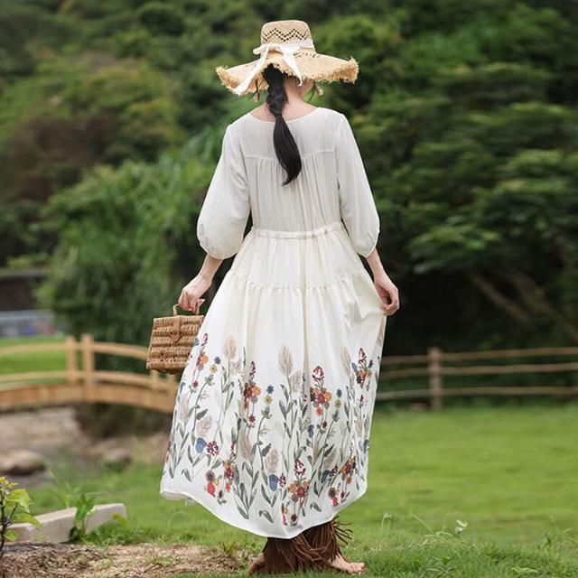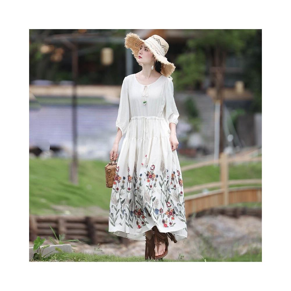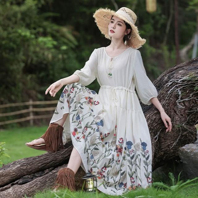 欧莱 2025新款夏季印花大擺連衣裙新疆西藏內蒙青海旅拍度假裙A82762
