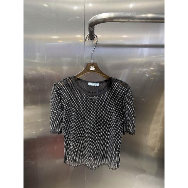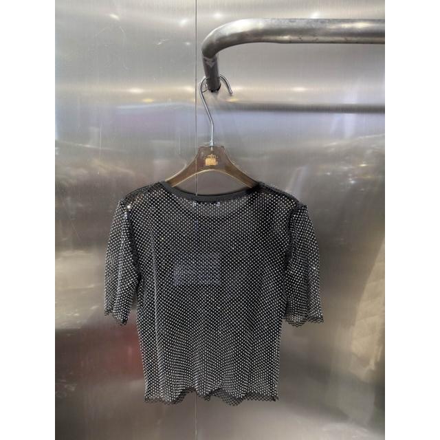 歐萊 25夏季新款潮流镂空配吊帶透視圓領套頭短袖寬松短款T恤女重工燙