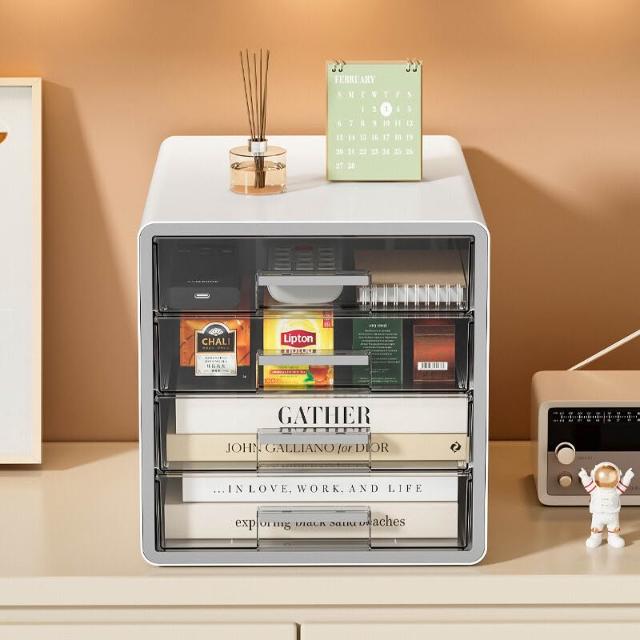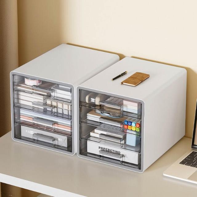 省空間分類收納 透明多層 抽屜式 文件收納盒 工位A4文件置物架 辦公桌桌上型 四層整理收納櫃子