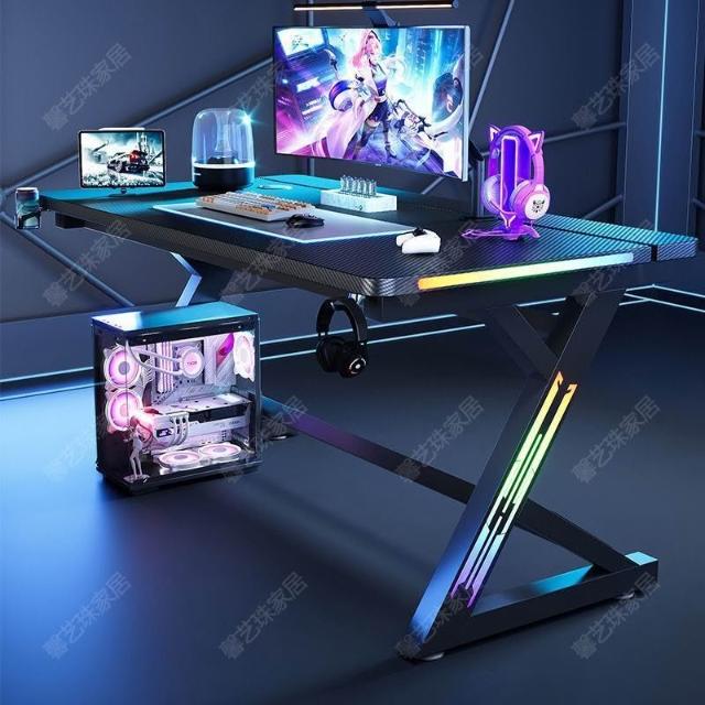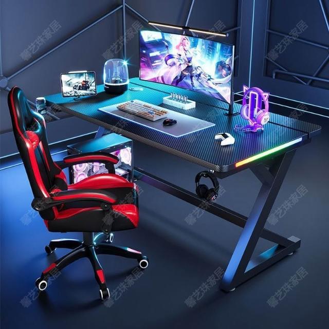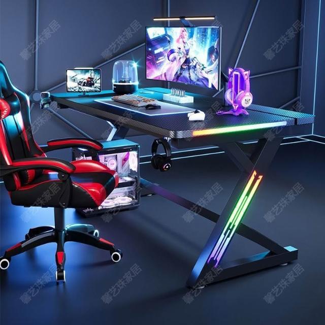 電競桌遊戲S3-Pro攻擊鲨遊戲電腦臺式桌二段帶腳踏碳纖維臥室桌子