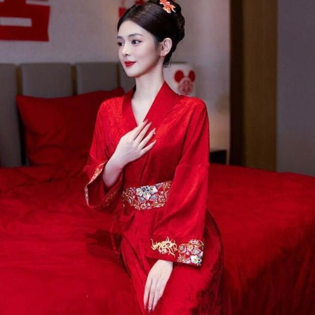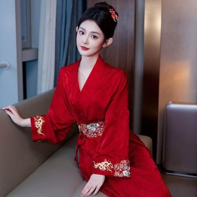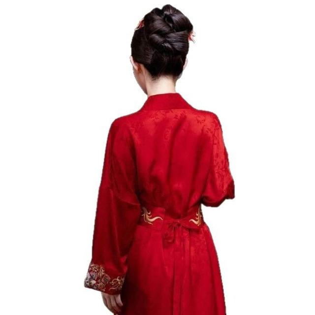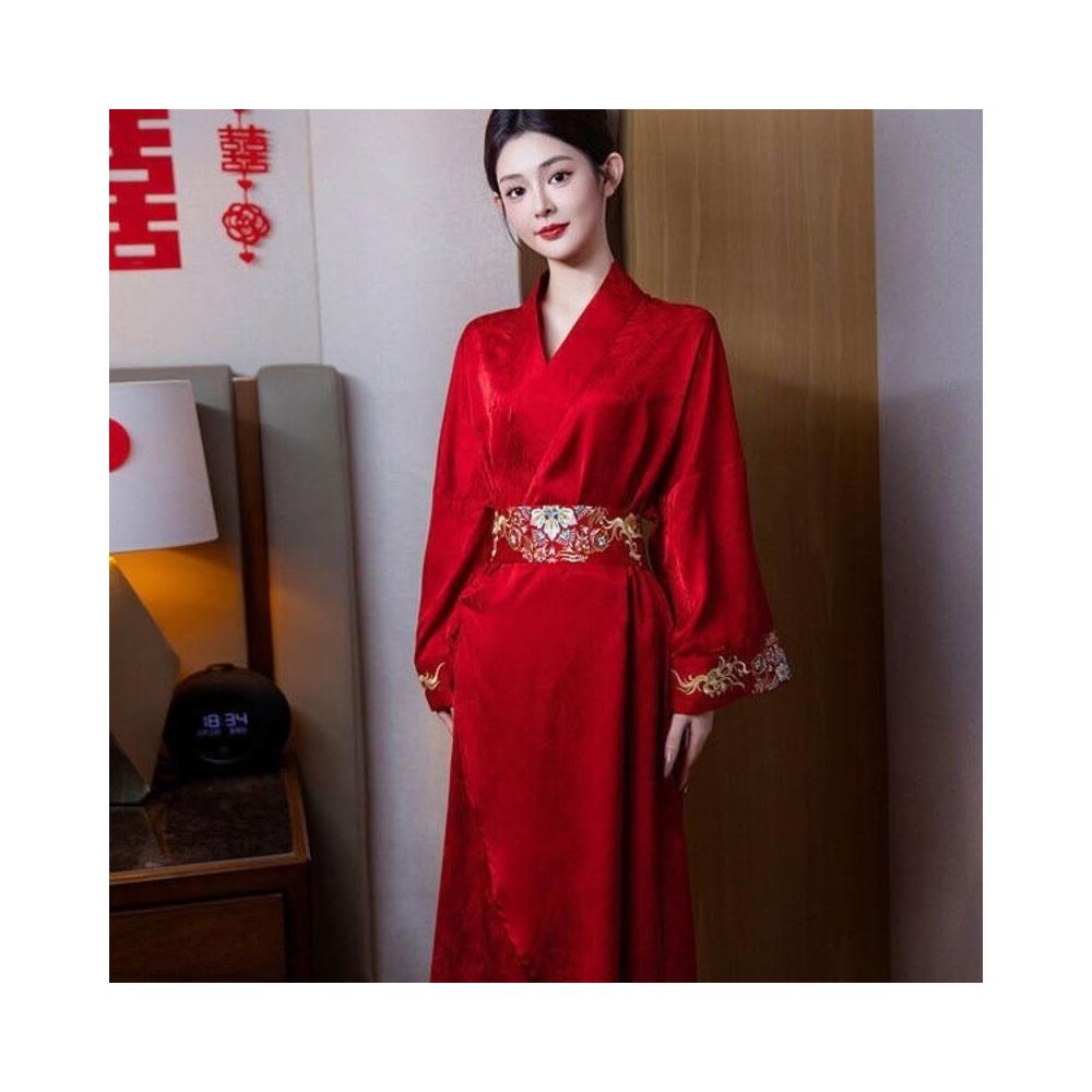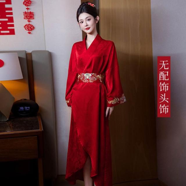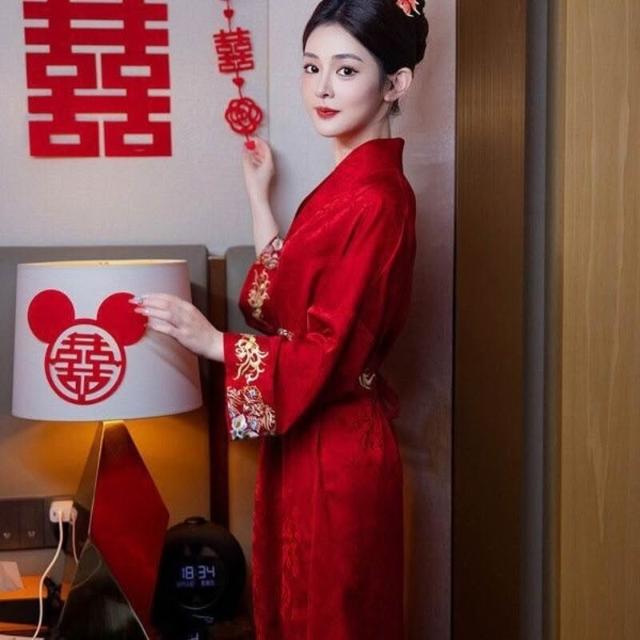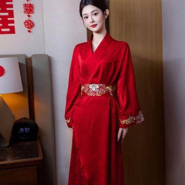 新中式晨袍女新娘結婚感睡袍紅色本命年長款婚禮睡衣新娘晨袍