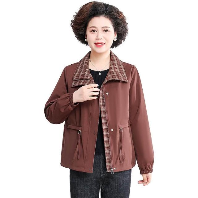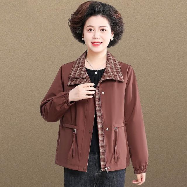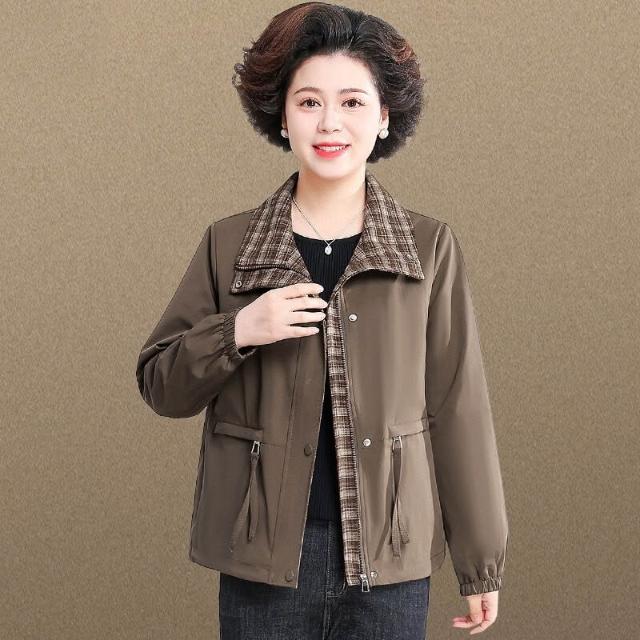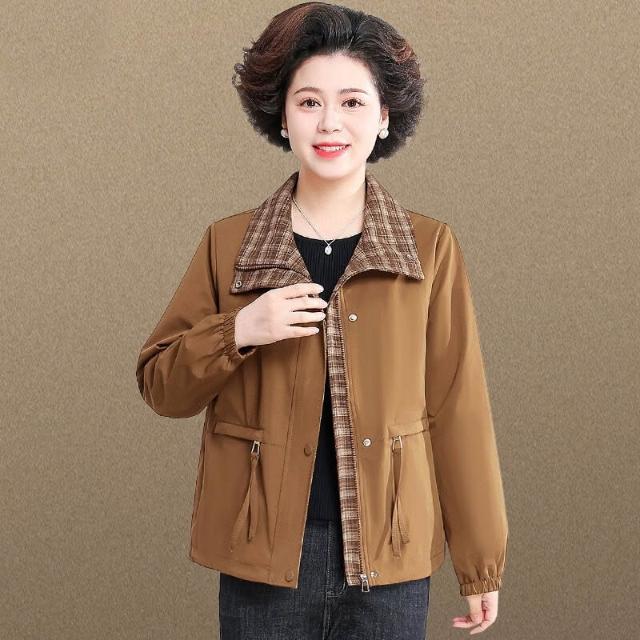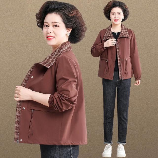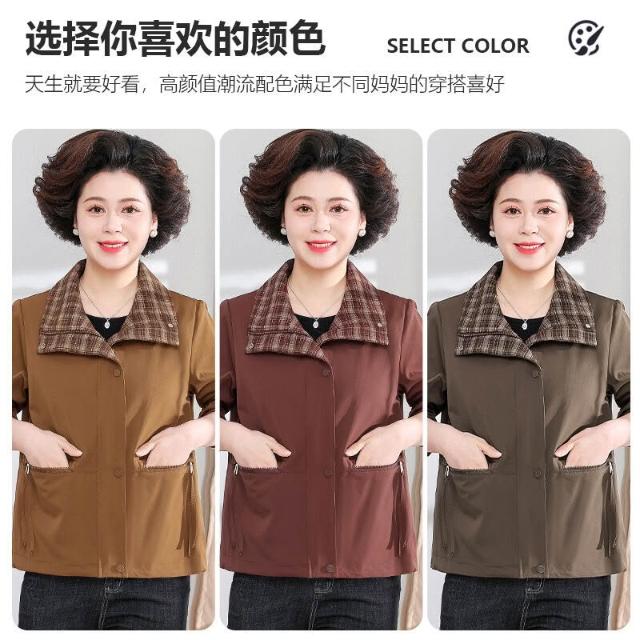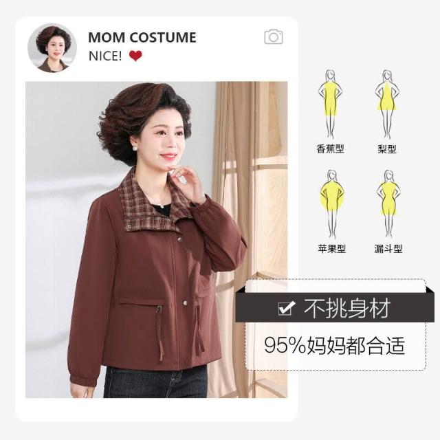 中年媽媽春裝2025新款外套休閑夾克衫洋氣中老年人春秋大碼上衣女