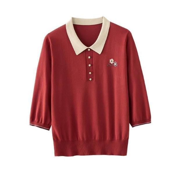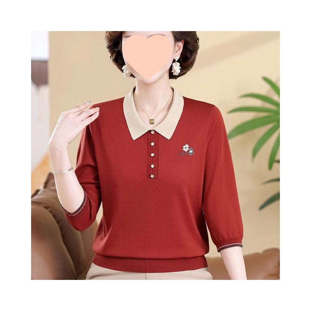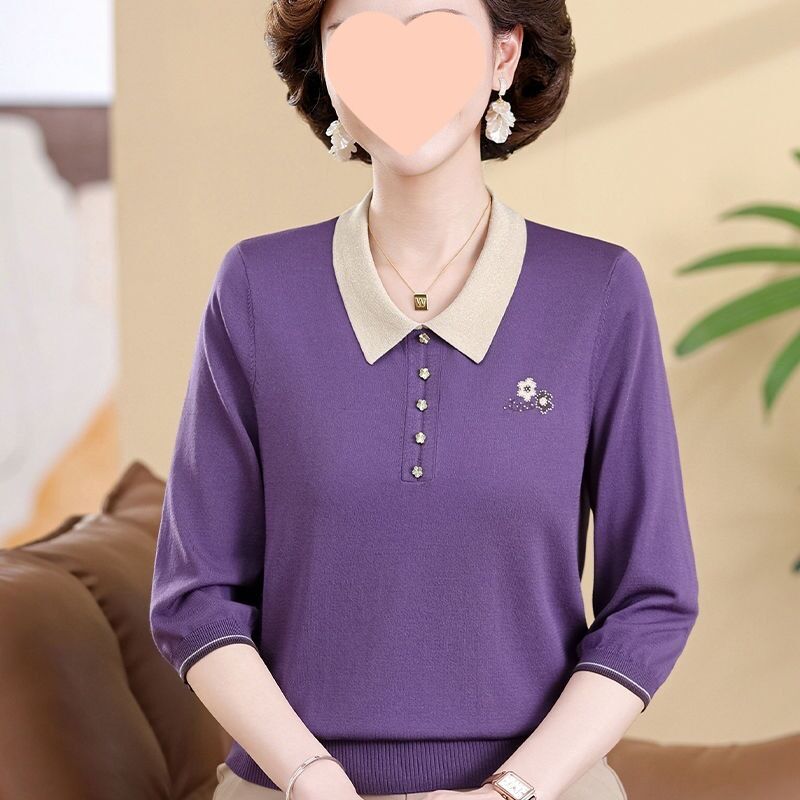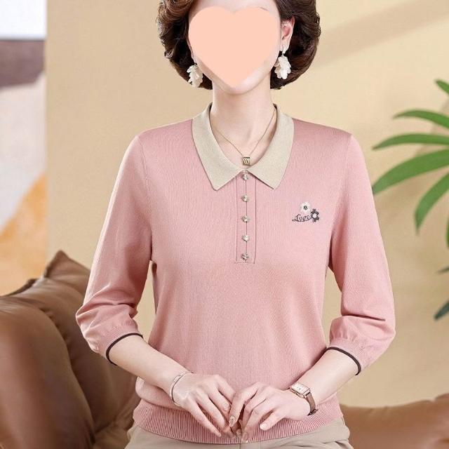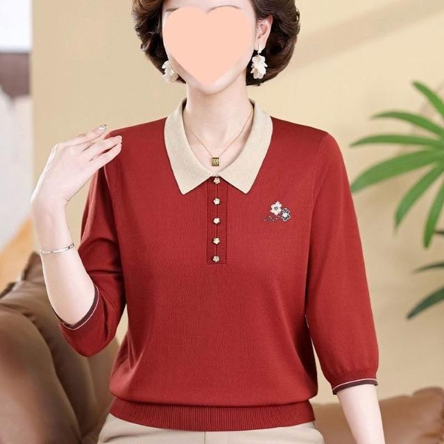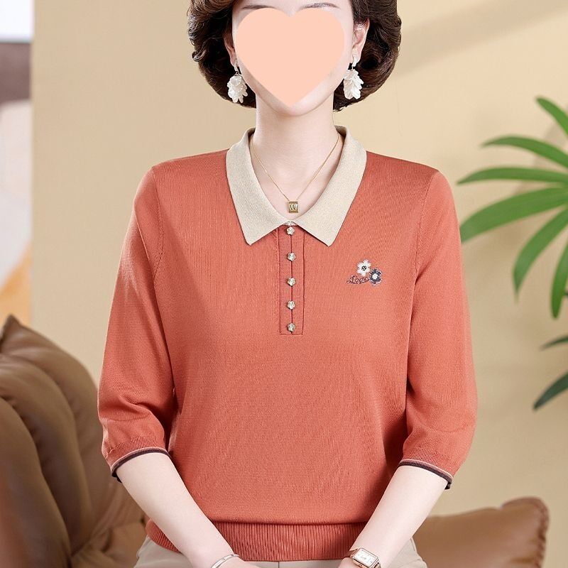 春夏新款中老年媽媽裝寬松大碼七分袖上衣打底翻領洋氣襯衫氣質