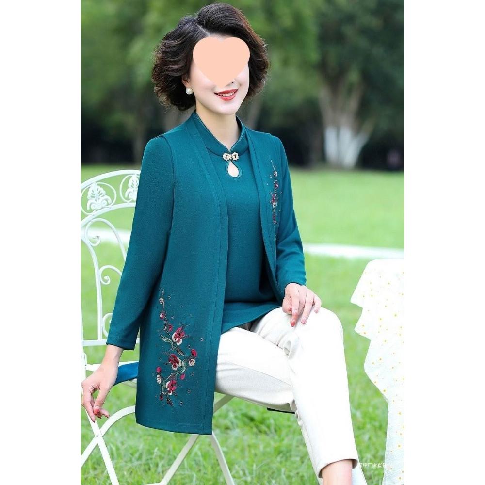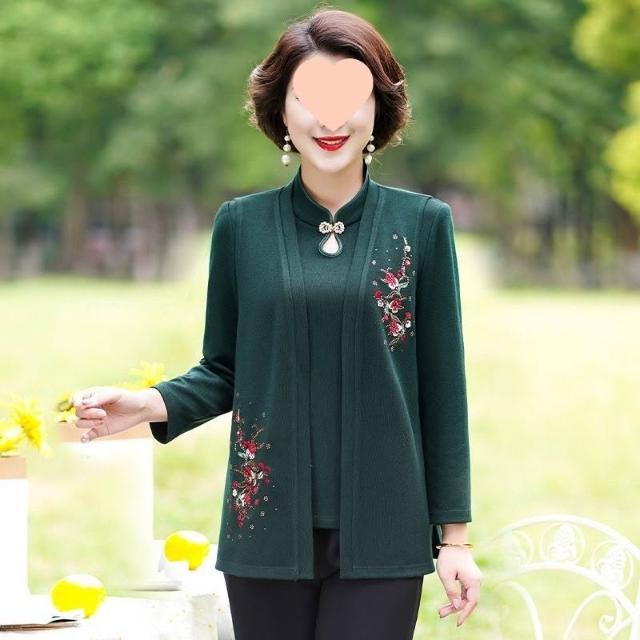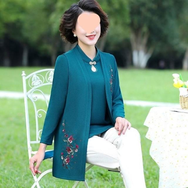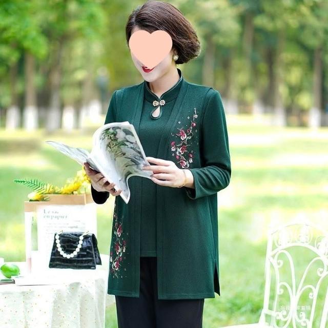 胖媽媽兩件套裝打底衫寬松春秋加肥大碼外穿洋氣中老年人女裝