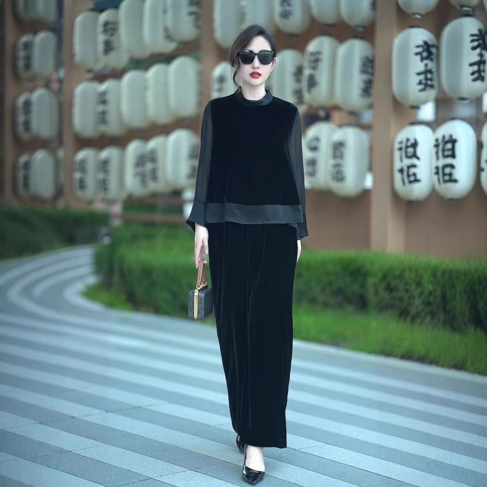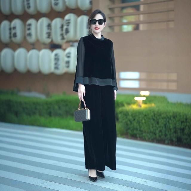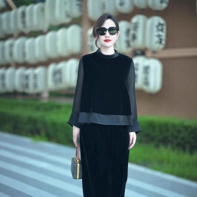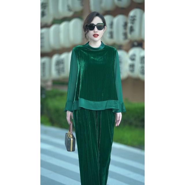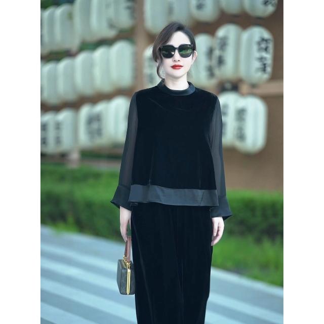中老年媽媽裝拼色印花上衣褲子套裝老奶奶寬松顯瘦兩件套