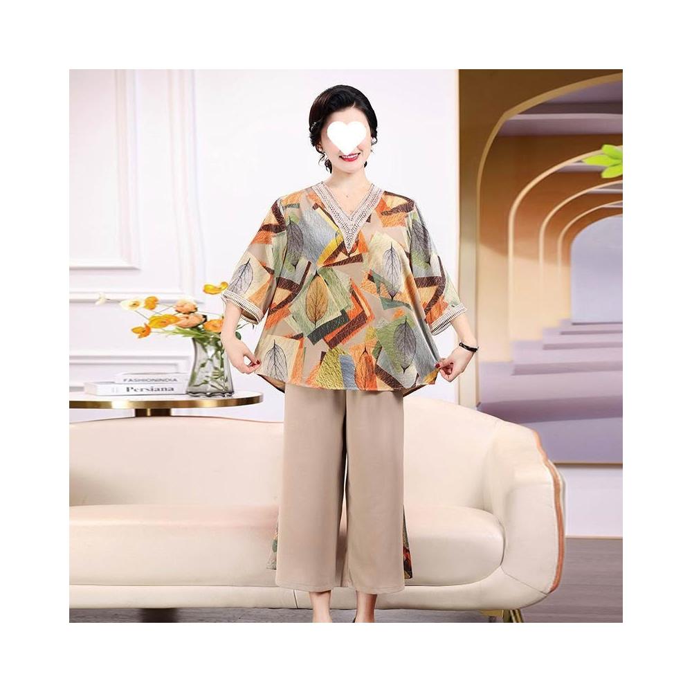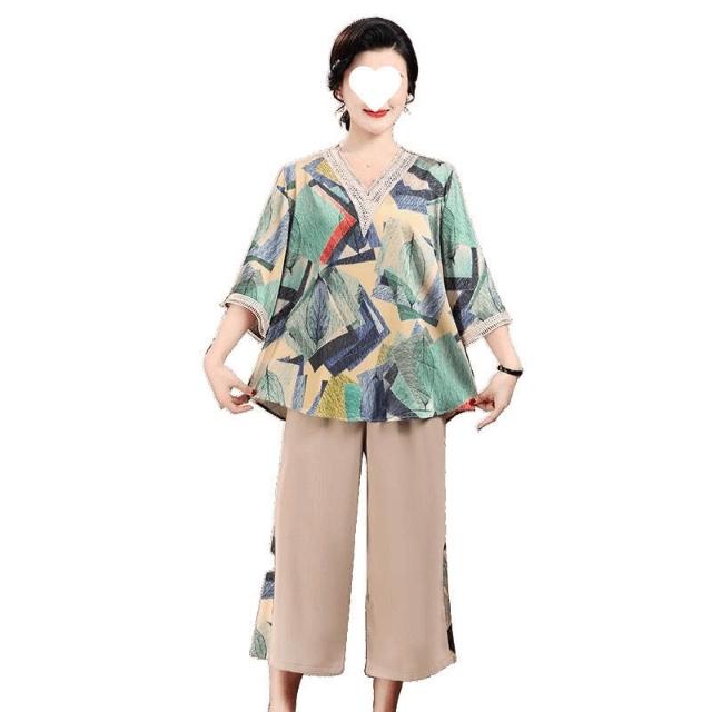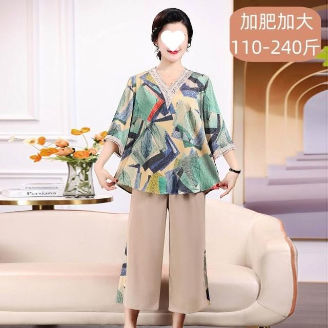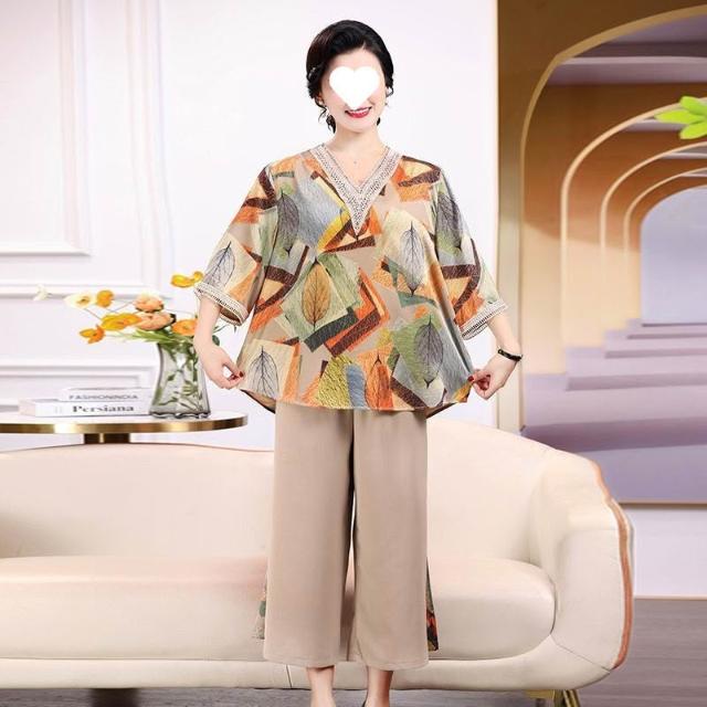 中老年套裝媽媽洋氣中年高檔女裝夏裝兩件套新款老年人夏季上衣女