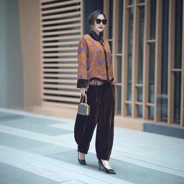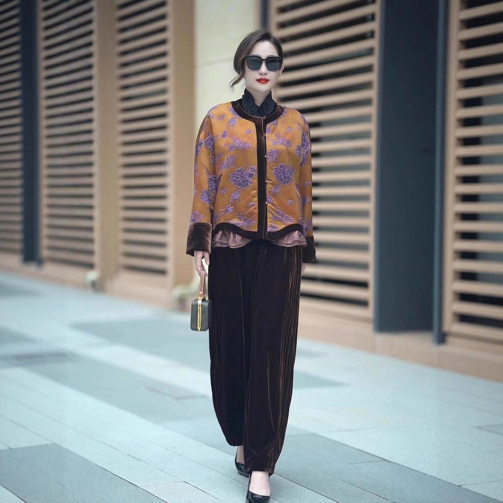 2025秋季新款中老年女裝國風媽媽套裝+褲子兩件套
