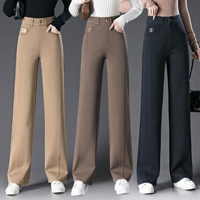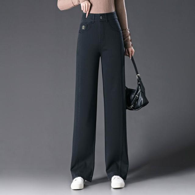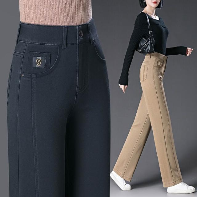 專櫃高端高腰直筒牛仔褲女2025秋冬季新款中年女士寬松窄版闊腿褲