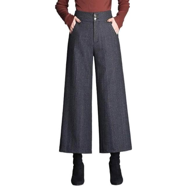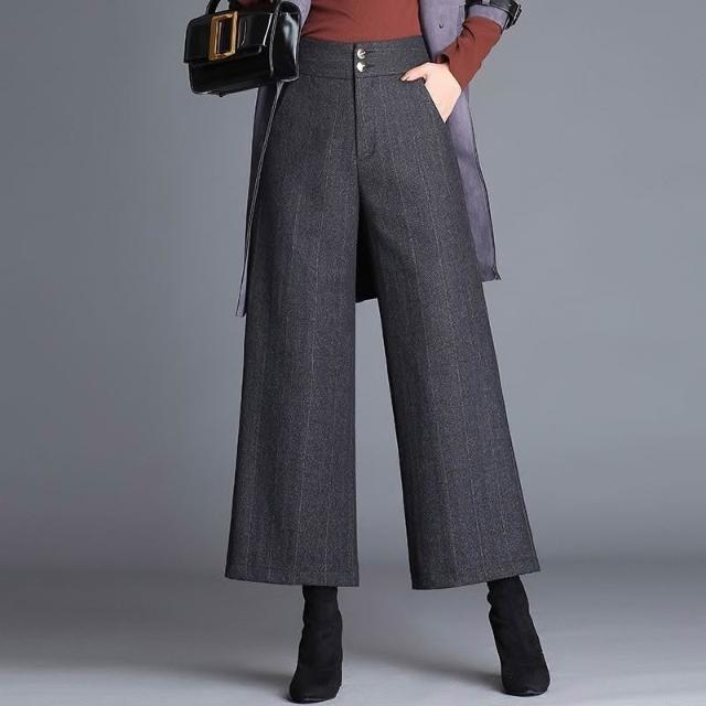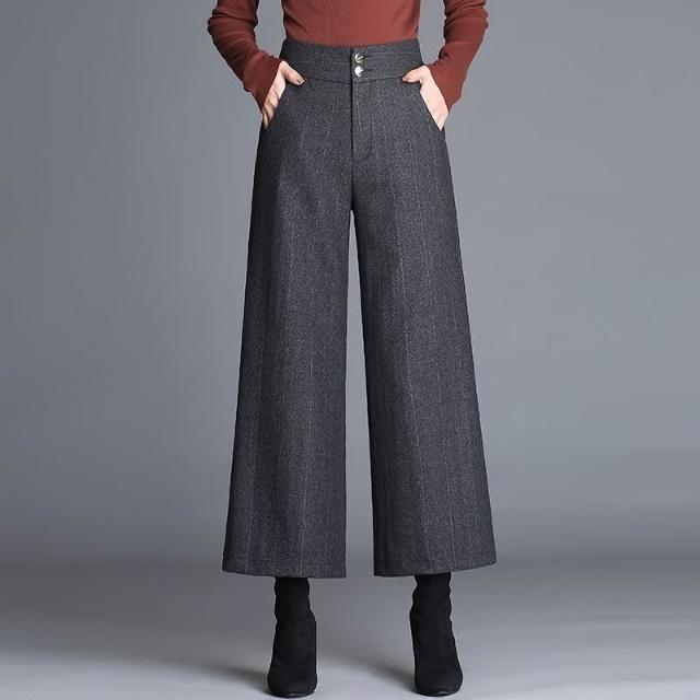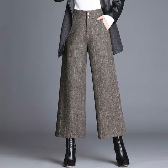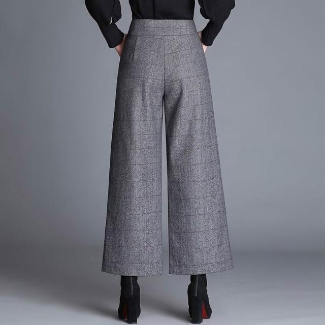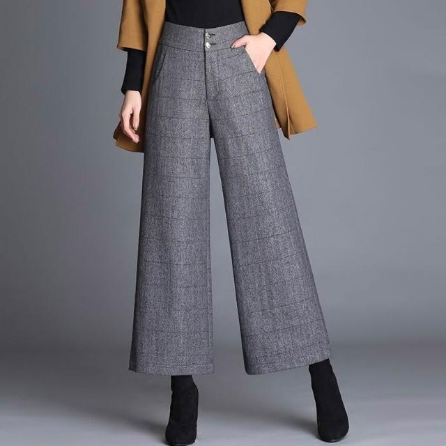 羊毛呢闊腿褲女2025秋冬新款高腰顯瘦大碼中年媽媽九分格子直筒褲