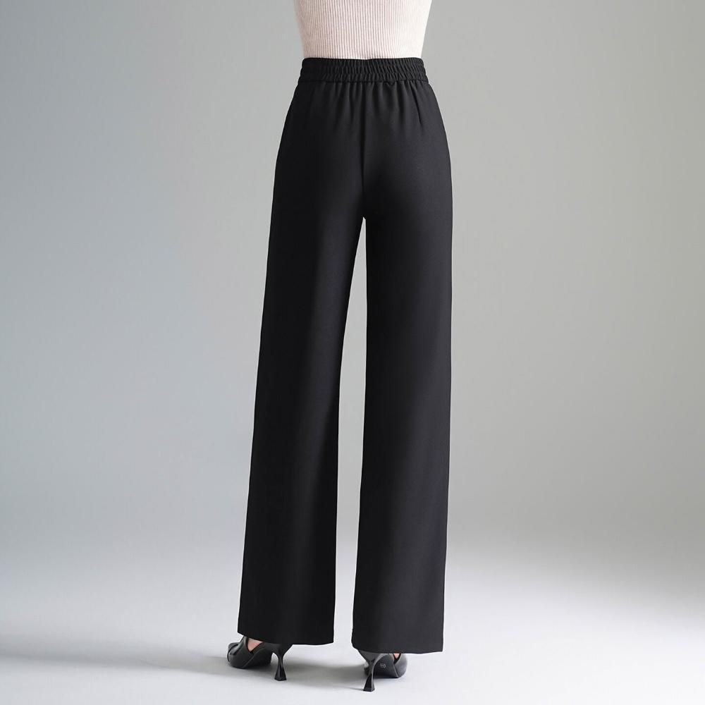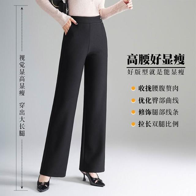 2025春秋新款窄版闊腿西裝褲女高腰中老年媽媽褲寬松簡約直筒褲子