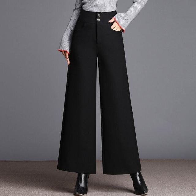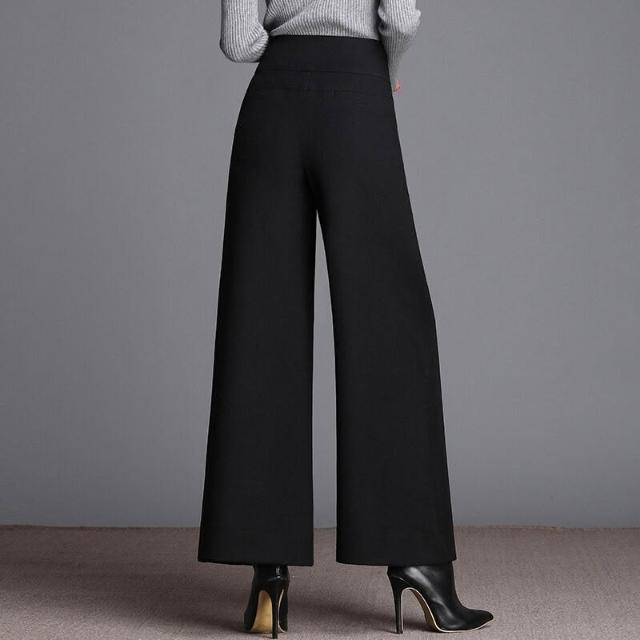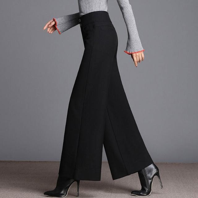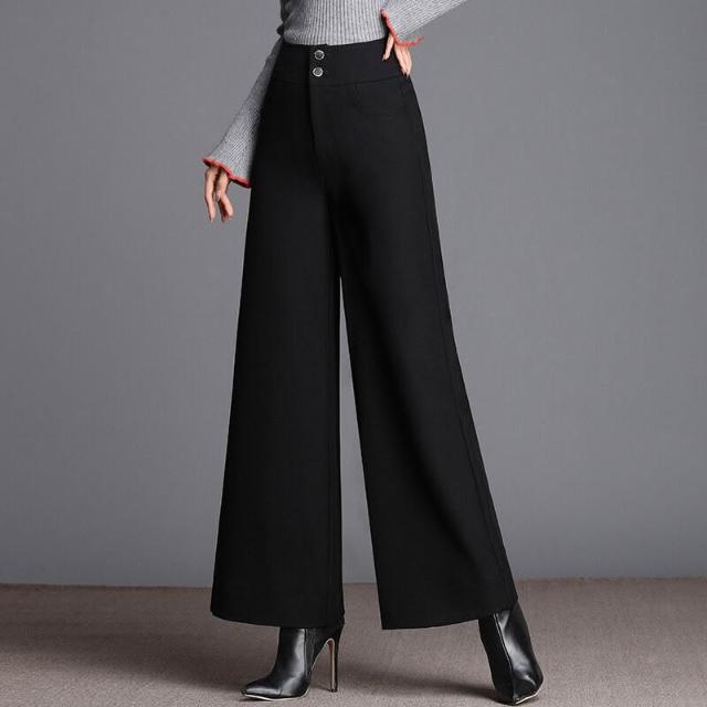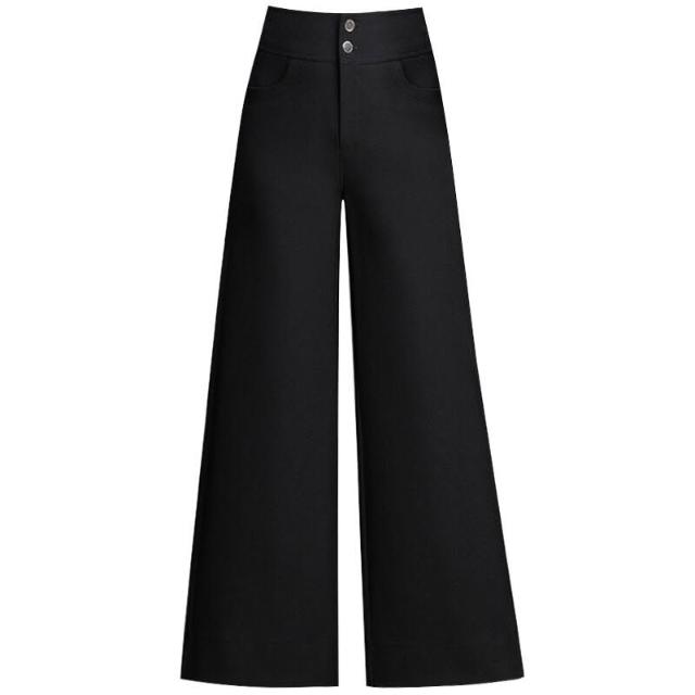 黑色闊腿褲女秋冬高腰垂感直筒長褲寬松顯瘦休閑大腳中年媽媽褲子