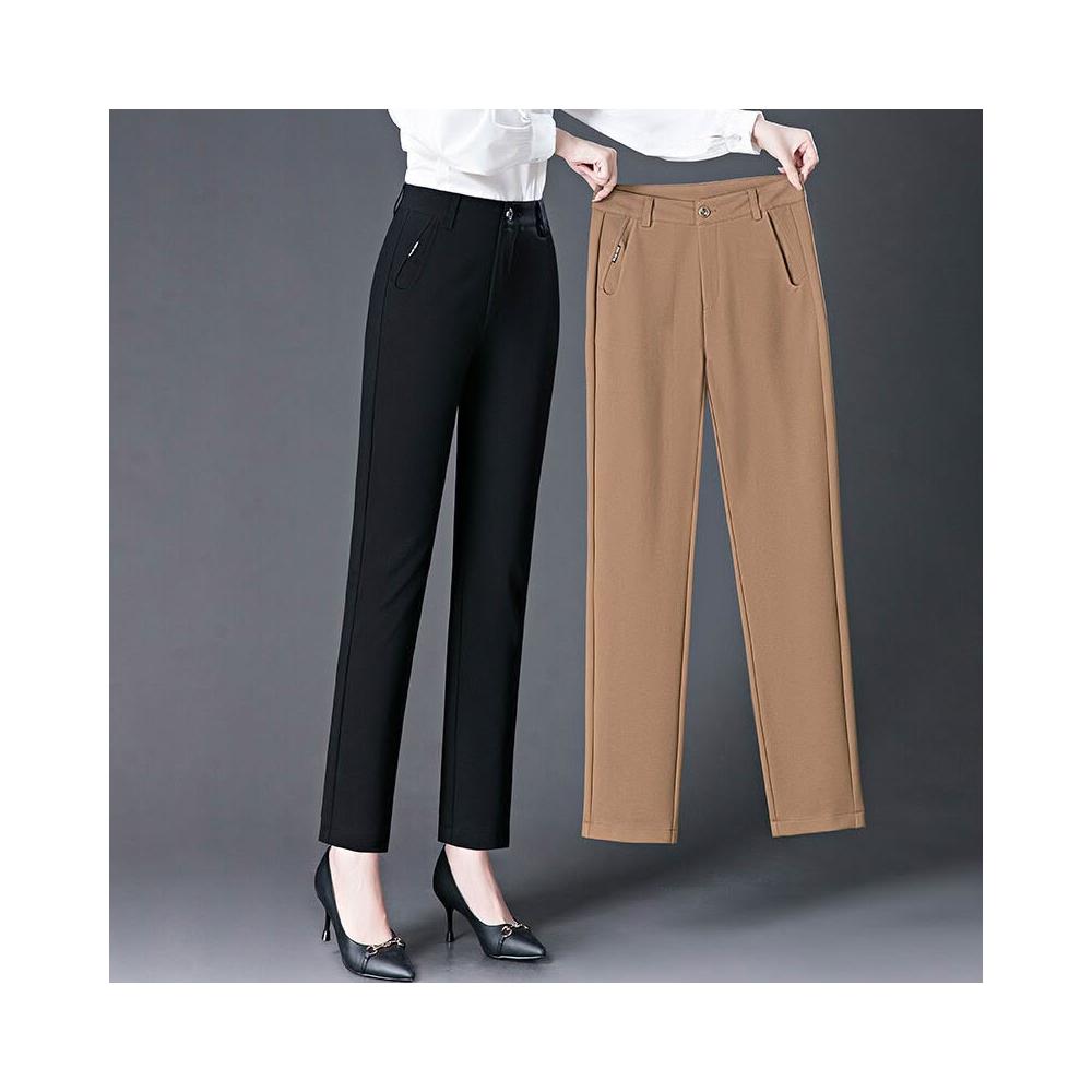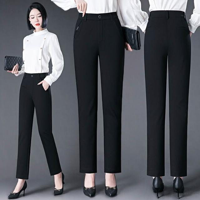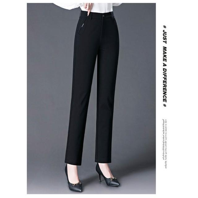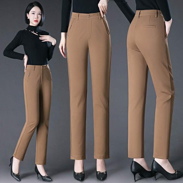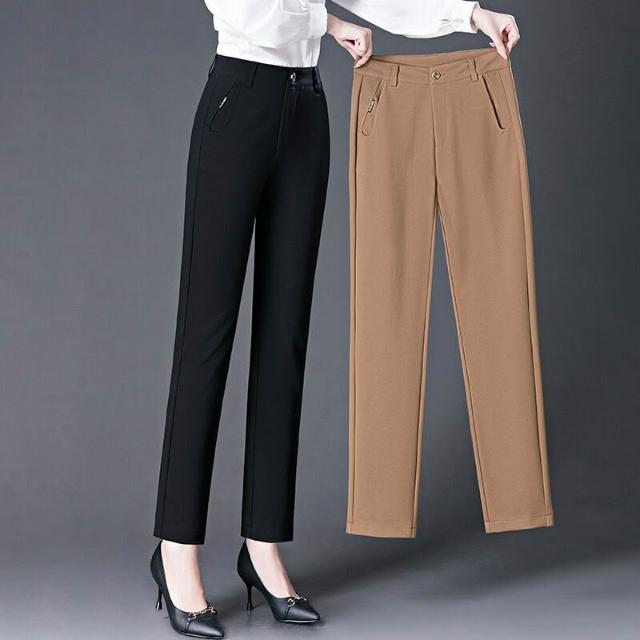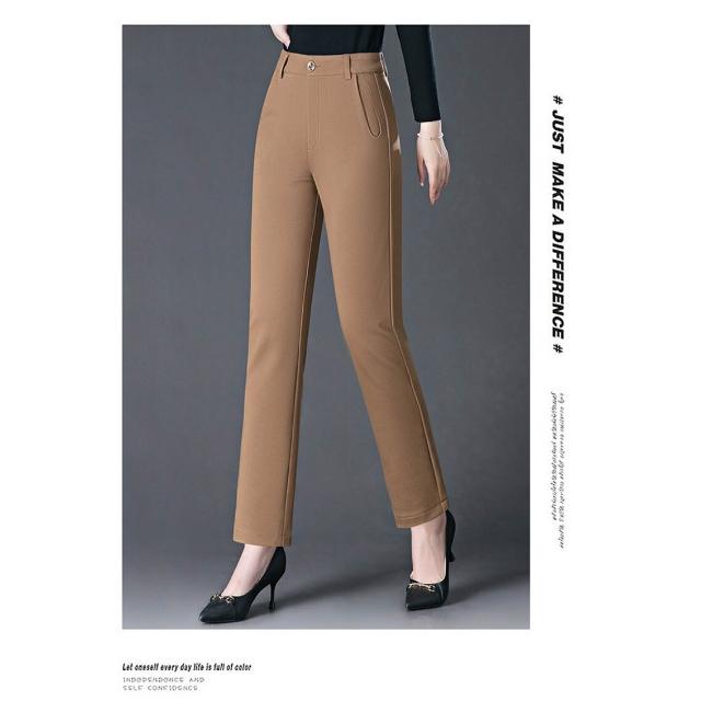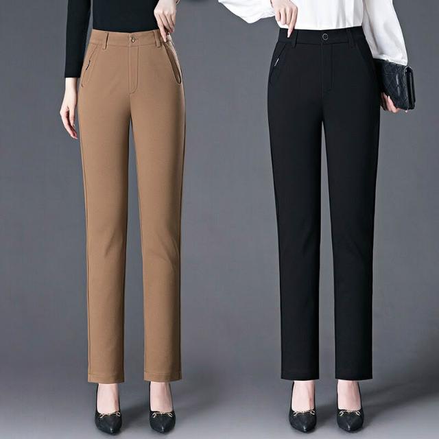 秋冬季寬松女式休閑褲中年媽媽高腰直筒褲彈力大碼胖MM長褲子