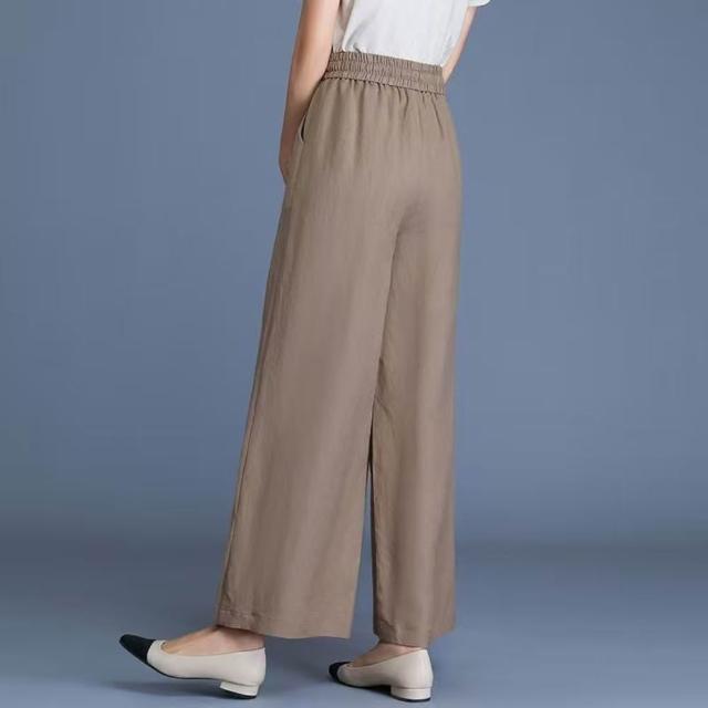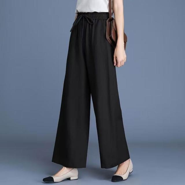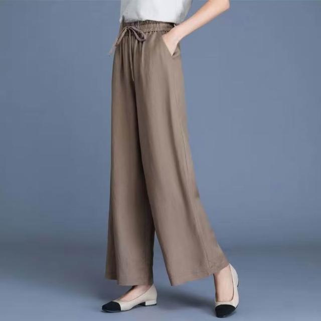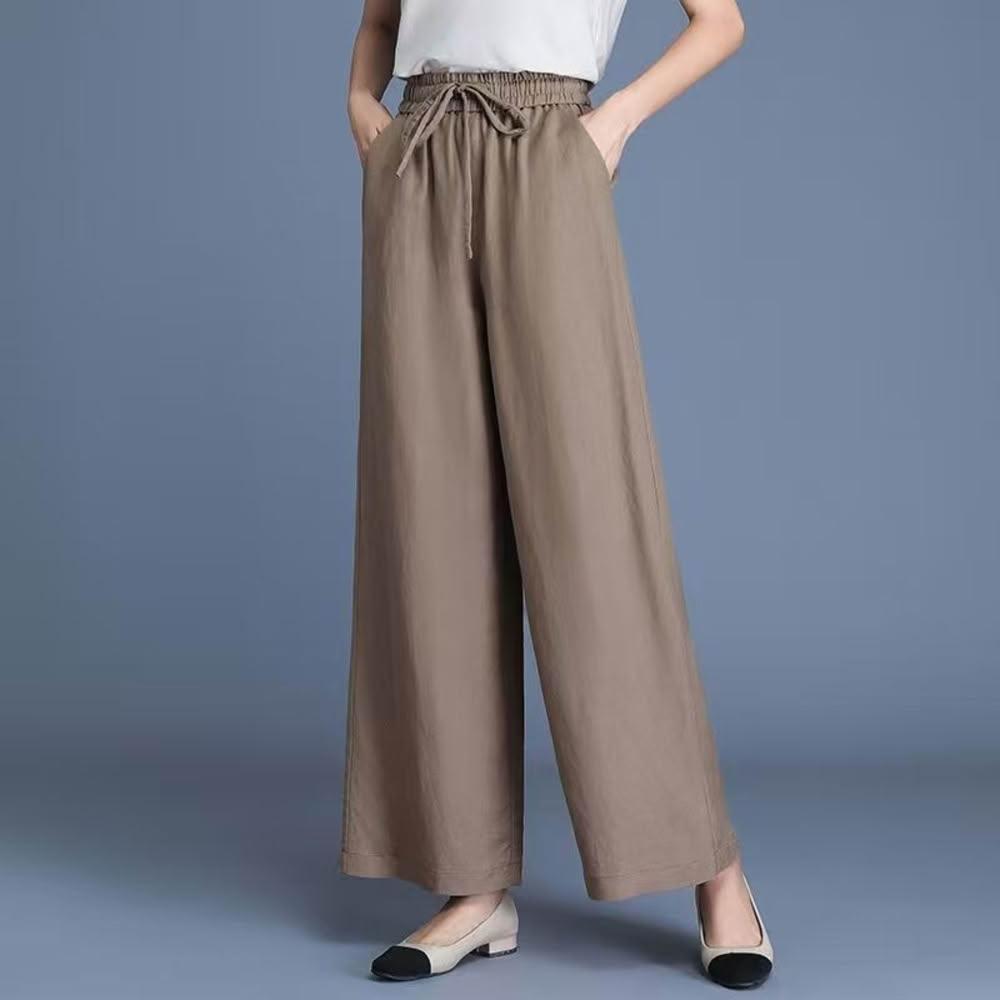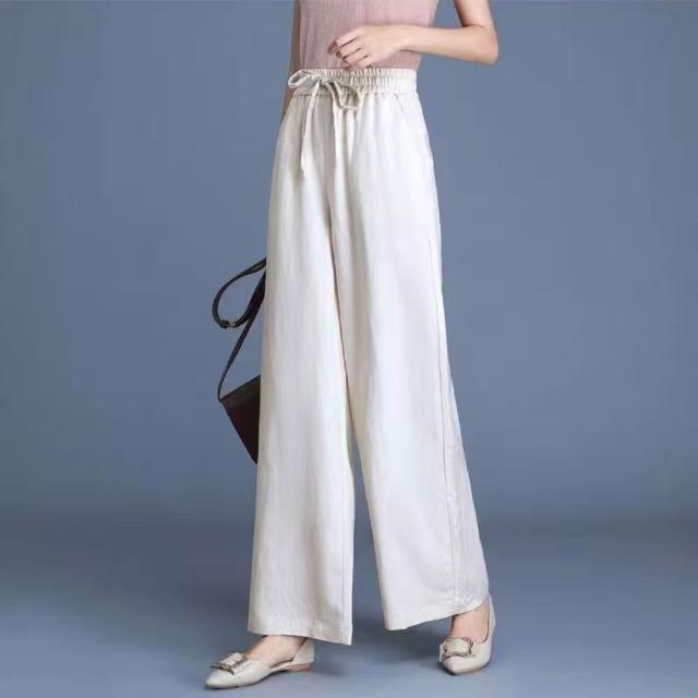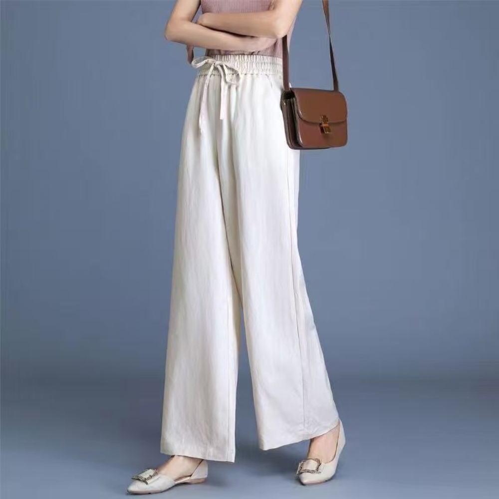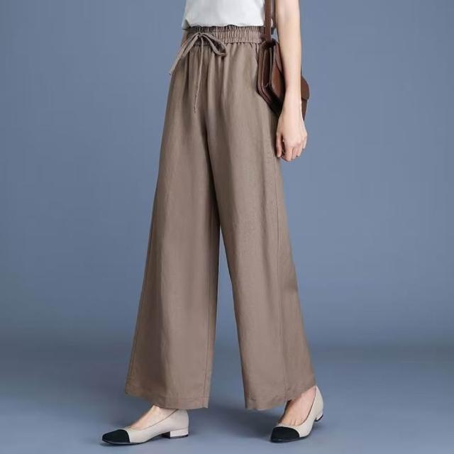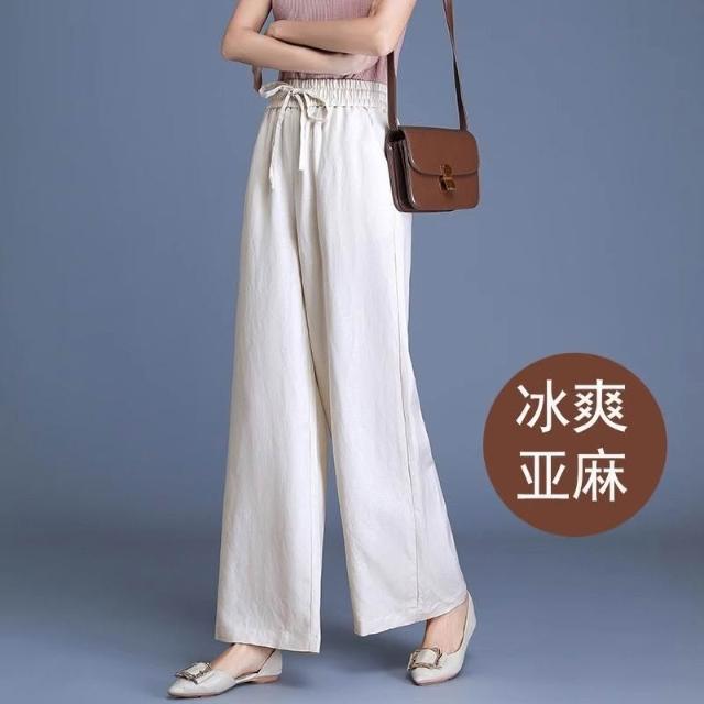 亞麻闊腿褲女2025夏季薄款高腰寬松小個子中年媽媽九分直筒褲