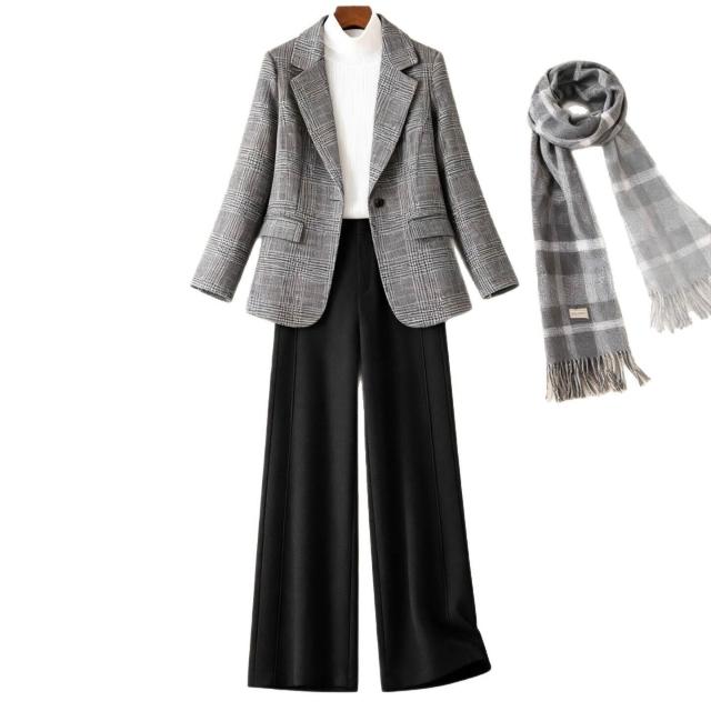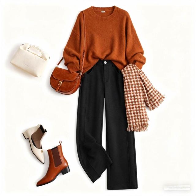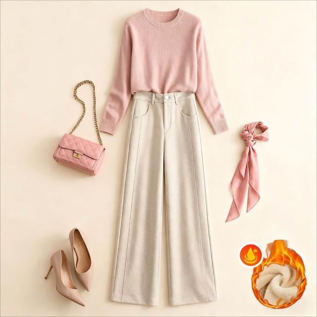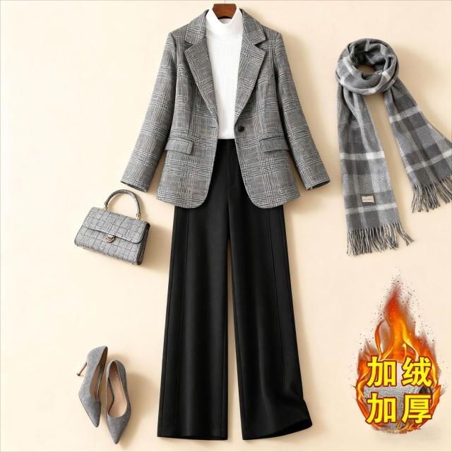 羊毛呢直筒褲女式2025年新款秋冬休閑褲西褲中年媽媽寬松大碼褲子