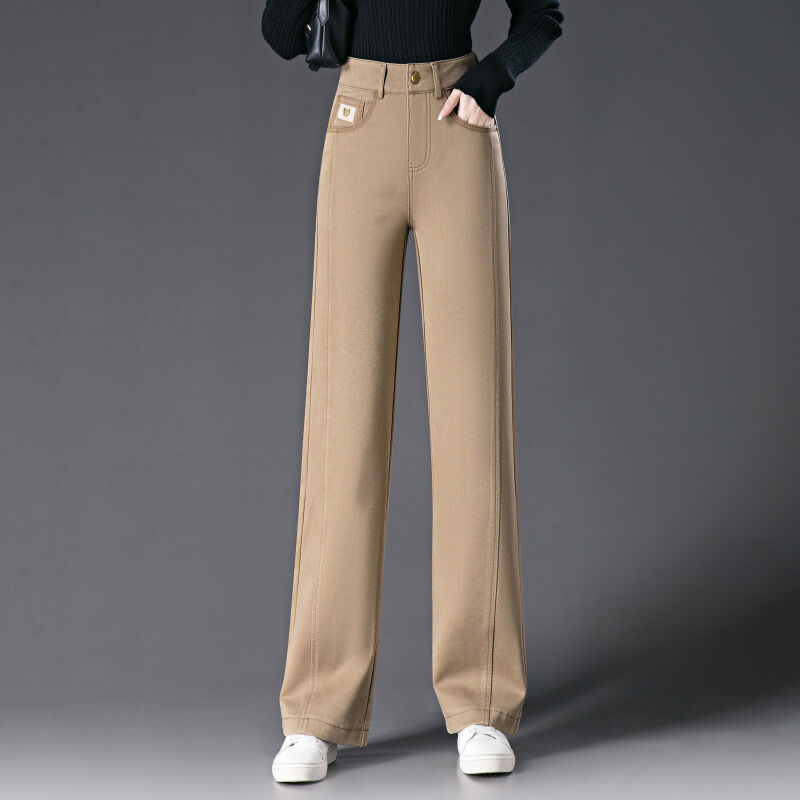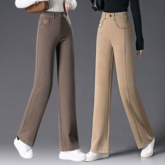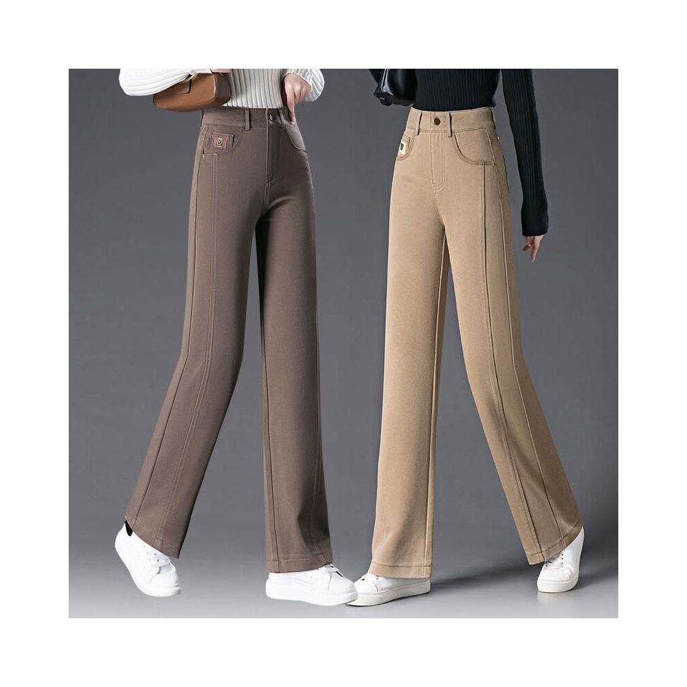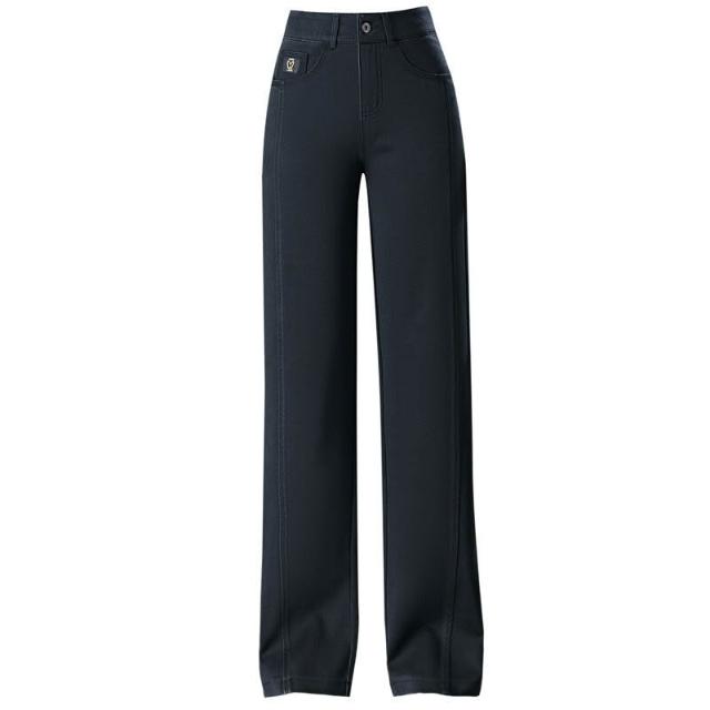 品牌高端高腰直筒牛仔褲女2024秋冬季新款中年女士寬松窄版闊腿褲