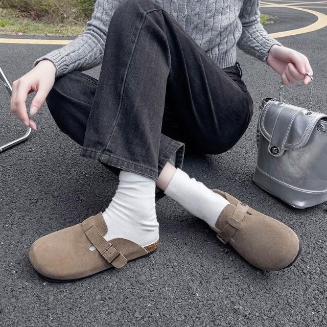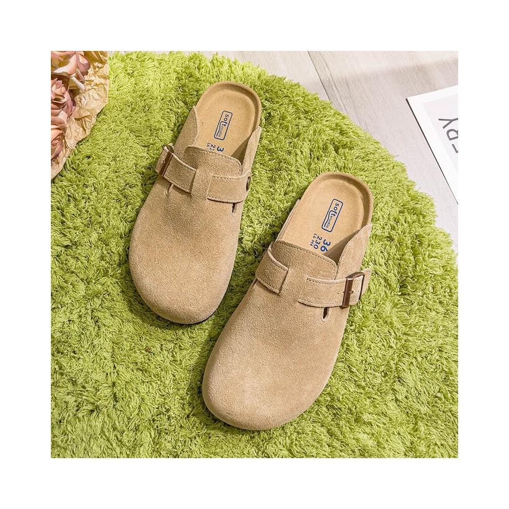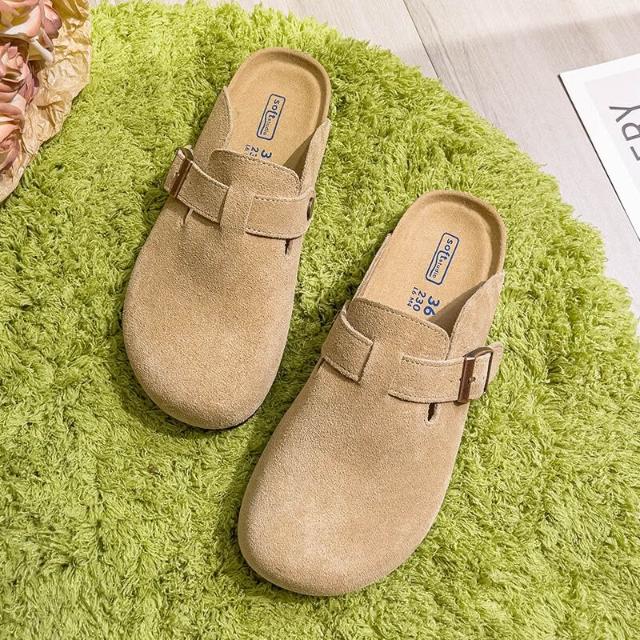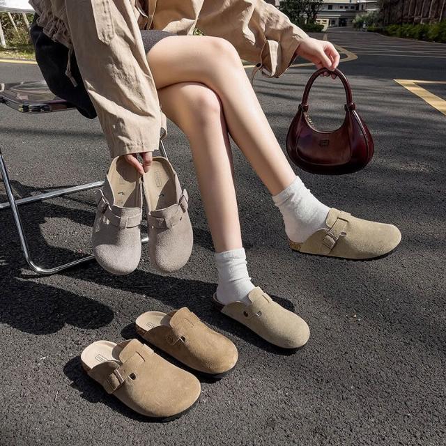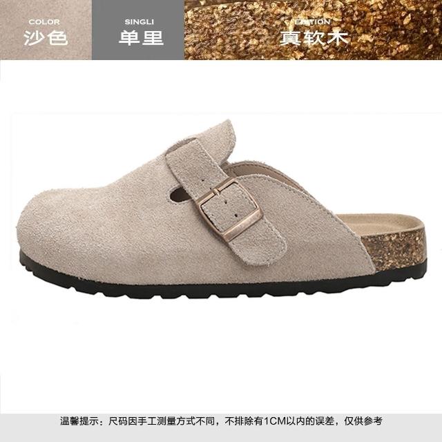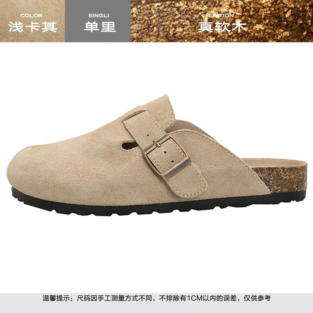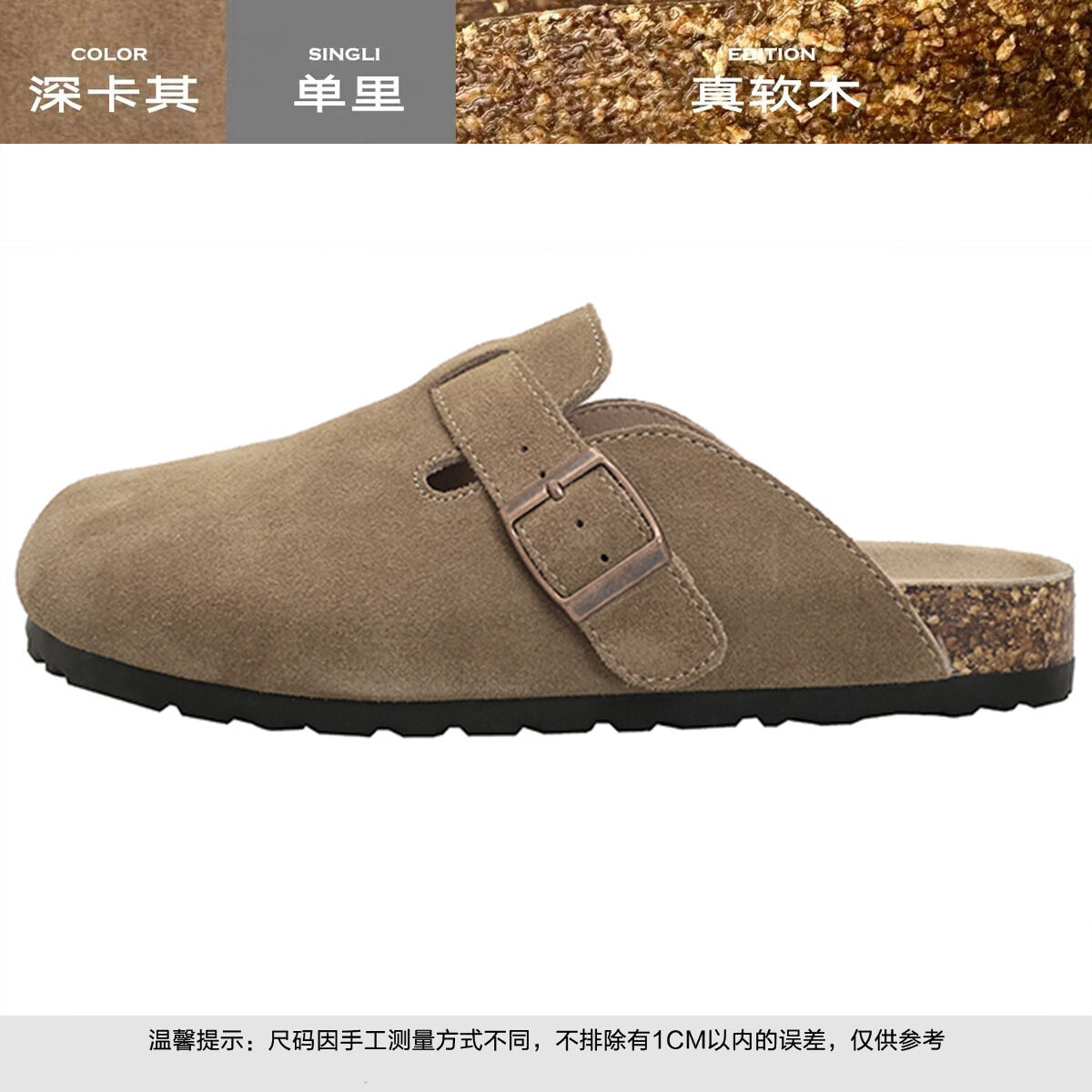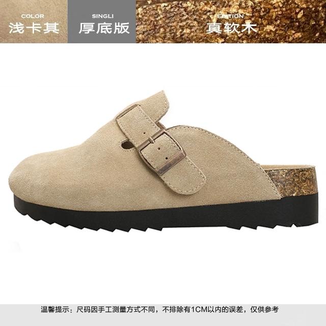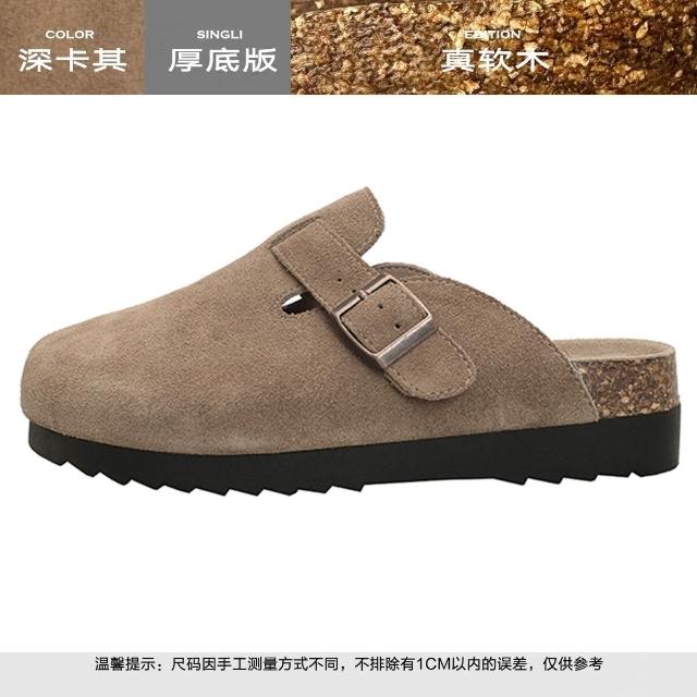 真皮牛皮半拖勃肯鞋女2025新款厚底春秋外穿包頭大碼平底博肯拖鞋