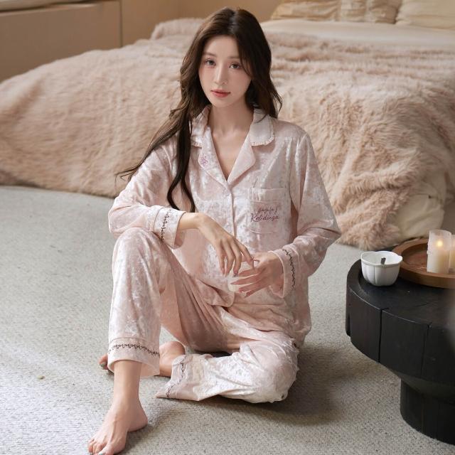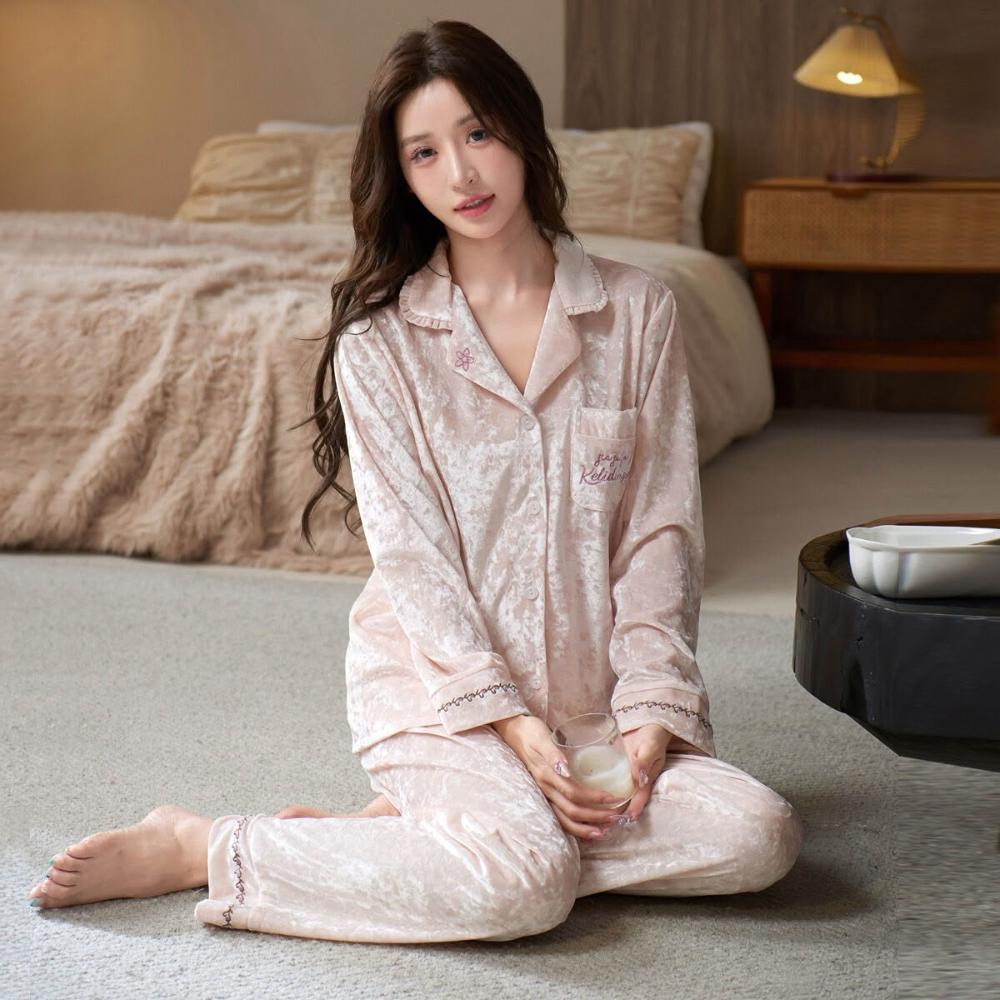 金絲絨睡衣女秋冬款2025新款感粉色輕奢薄絨套裝家居服梭織純棉