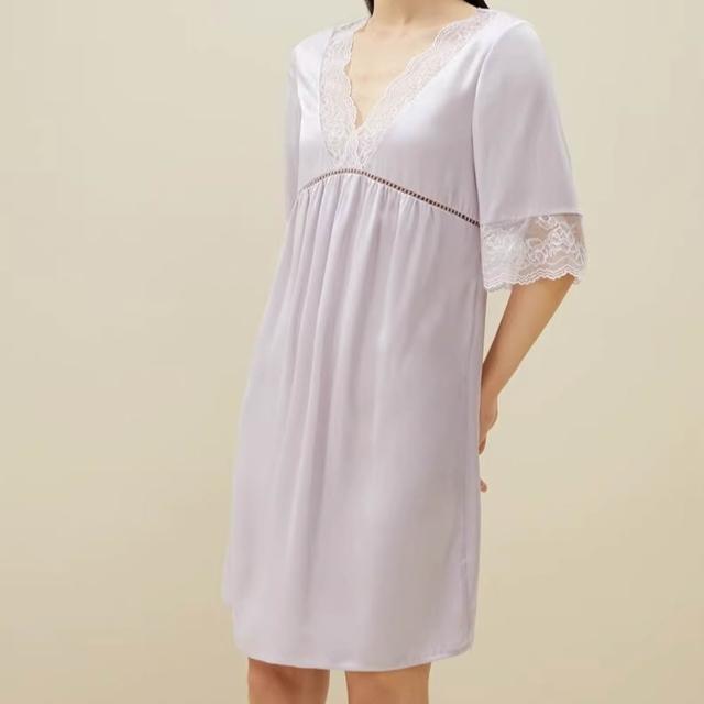 桑蠶絲睡裙女桑蠶絲蕾絲純色舒適寬松絲綢睡衣家居服休閑睡衣