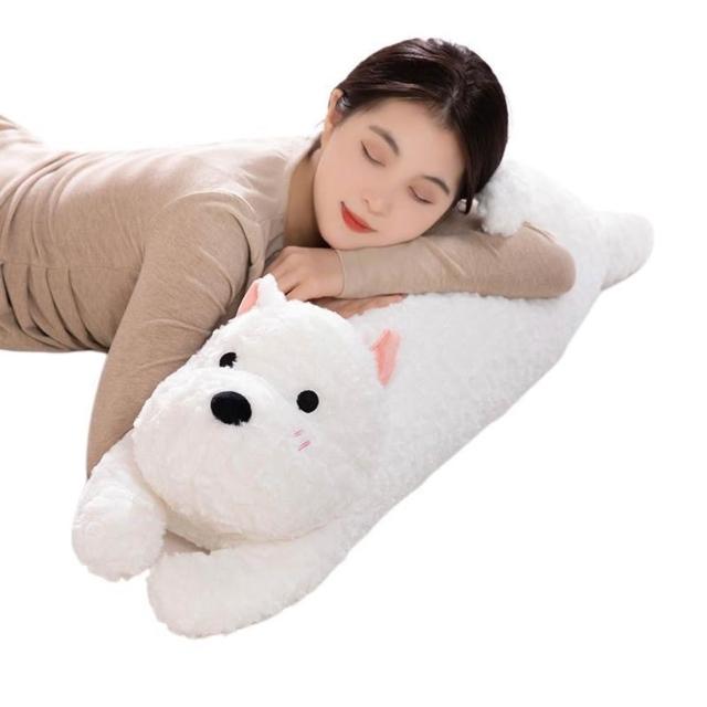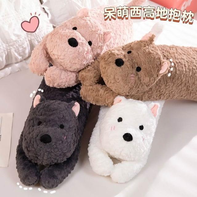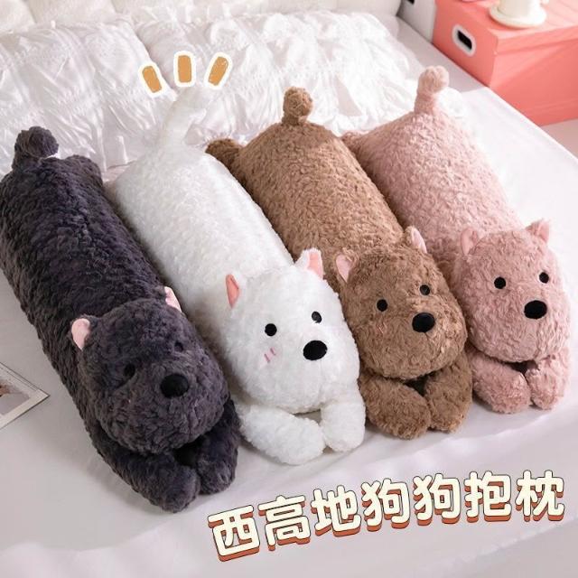 西高地睡覺抱枕長條床上可愛卡通毛絨小狗公仔學生宿舍床頭玩偶女