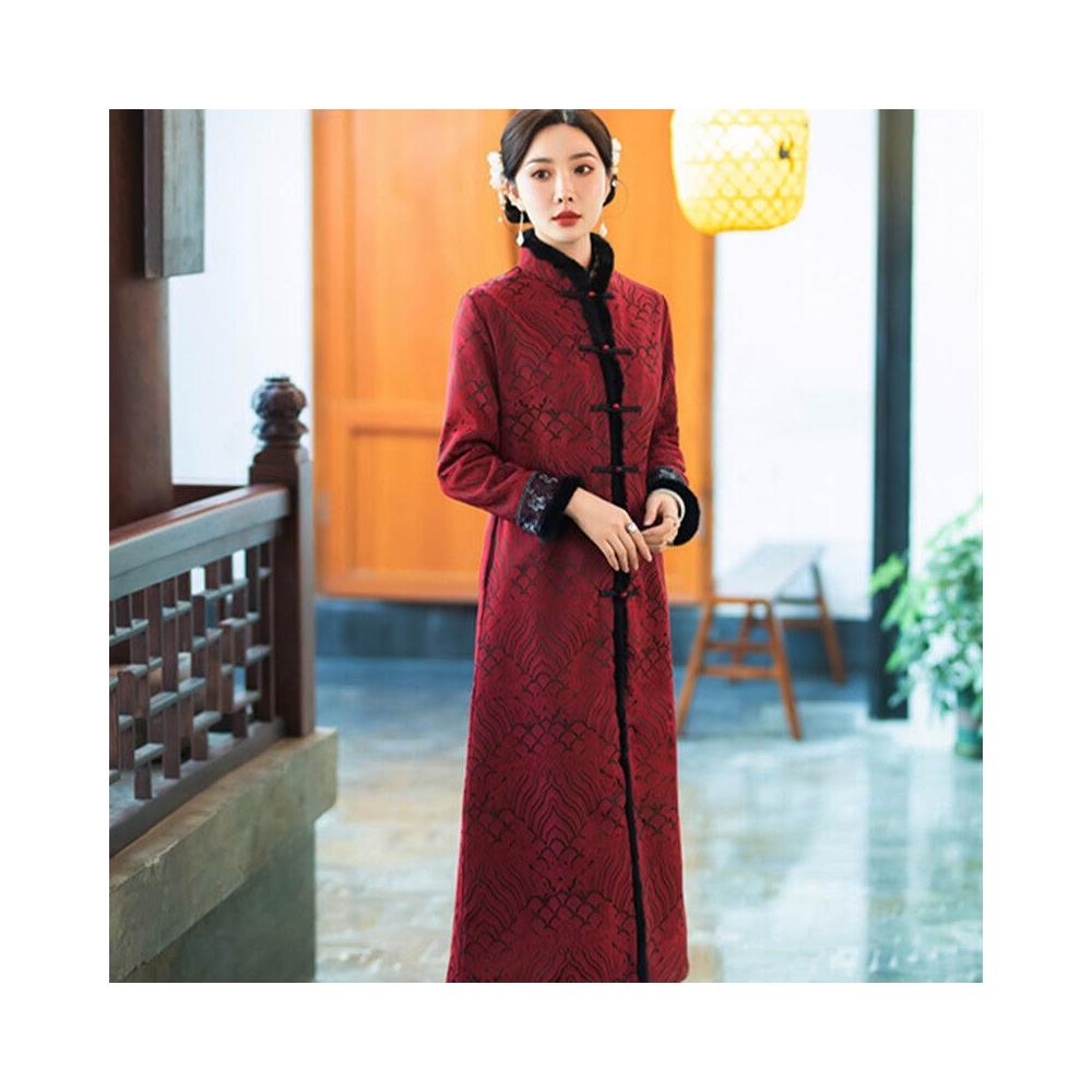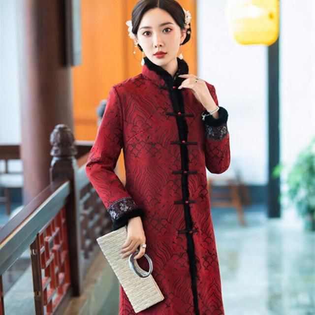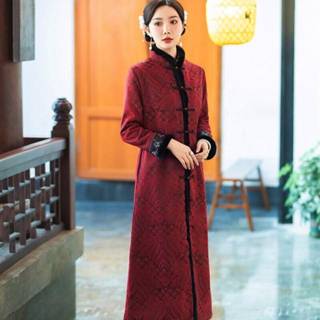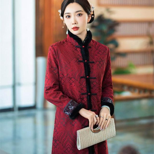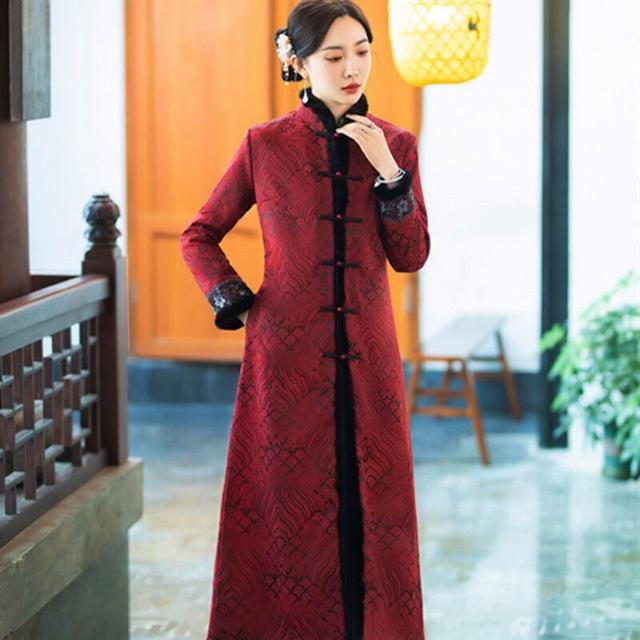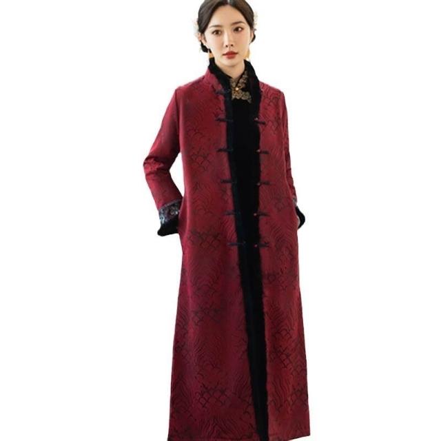 高貴新中式盤扣旗袍外套女長款改良秋冬氣質國風中年媽媽大衣外搭